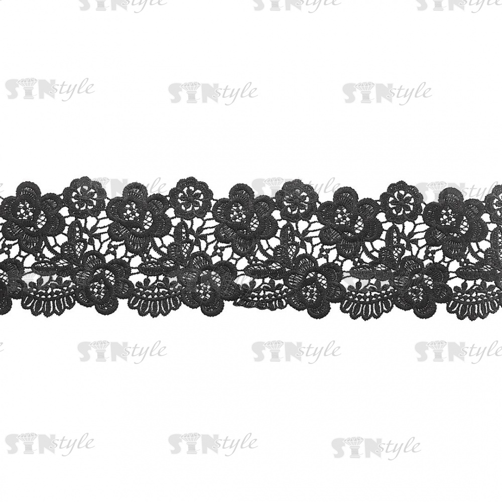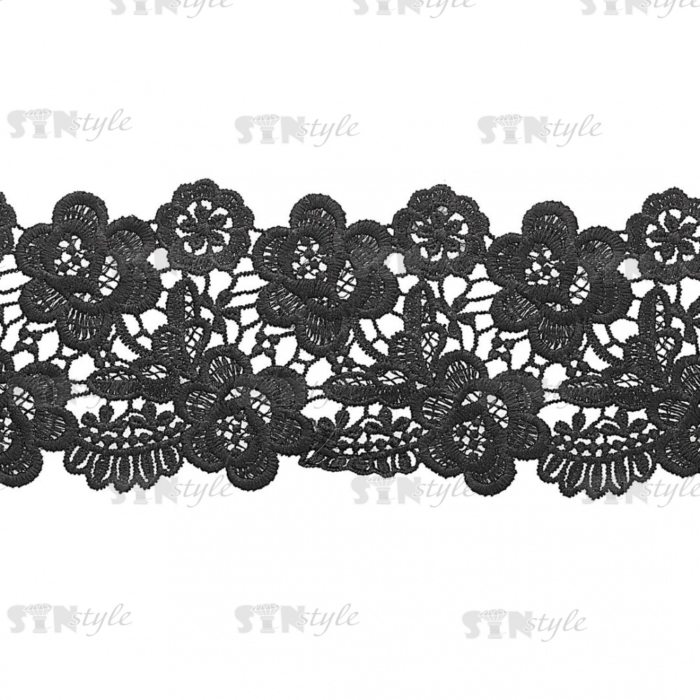 Кружево ажурное, ширина 85 мм, цвет черный, намотка 15 ярдов
