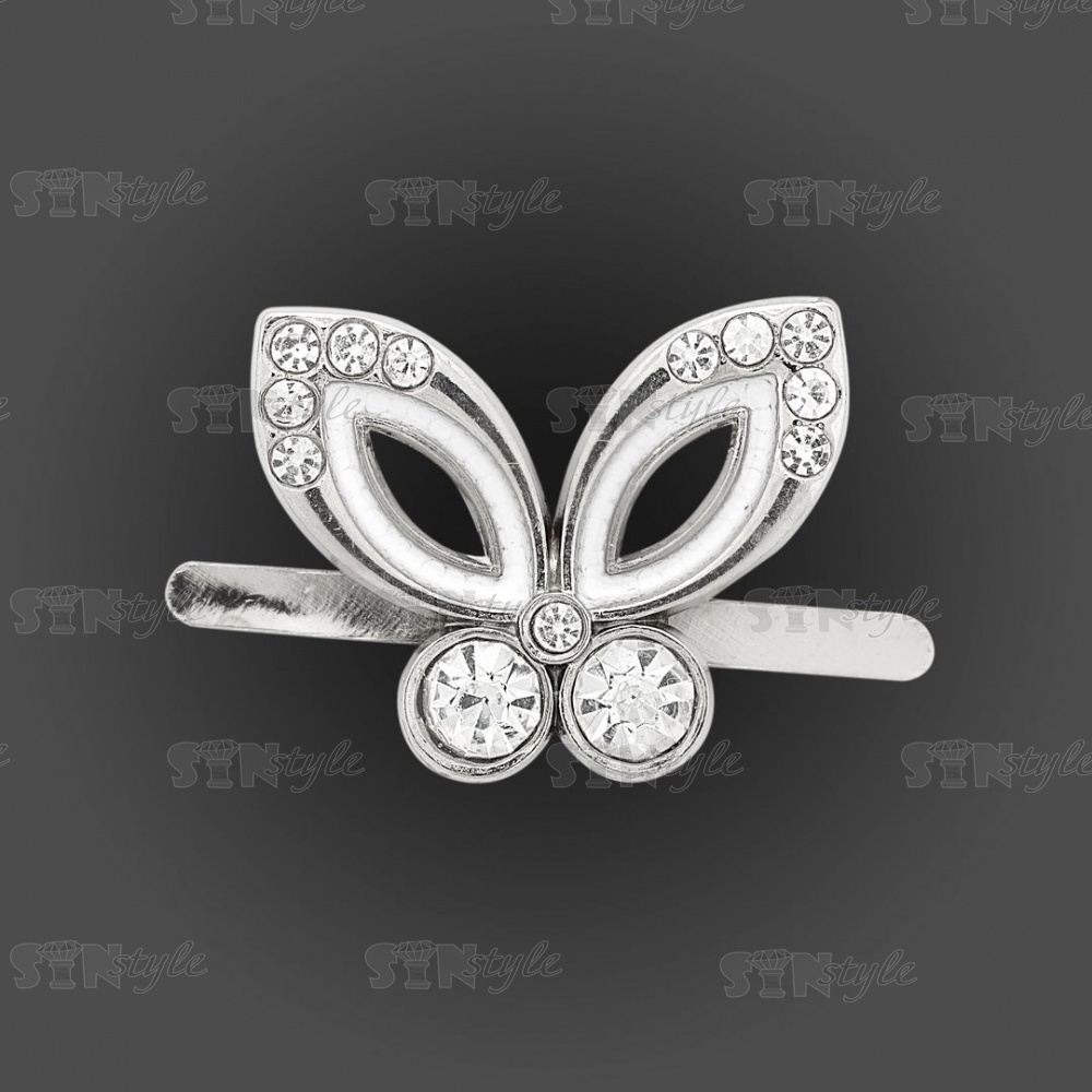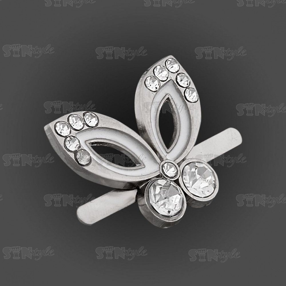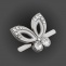 Брошь металлическая со стразами, крепление усики, размер 23ммх18мм, цвет нивель+белая эмаль+белые стразы