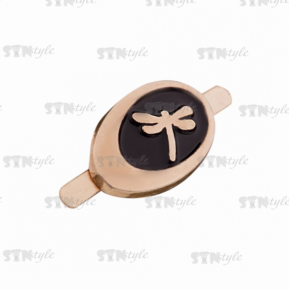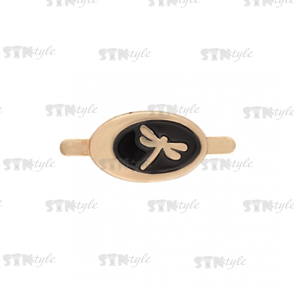 Брошь металлическая, крепление усики, цвет золотой+черный, размер 15 мм х 9 мм