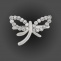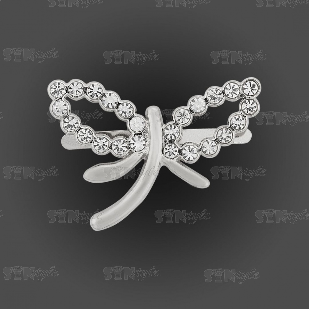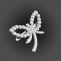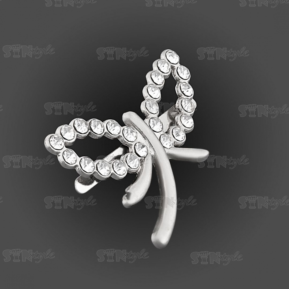 Брошь металлическая, крепление усики, размер 32 мм х 23 мм, цвет серебряный+белые стразы