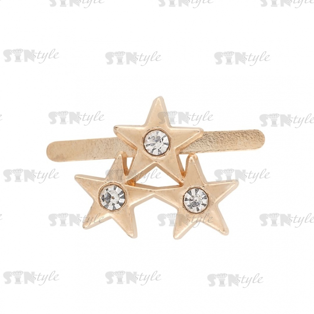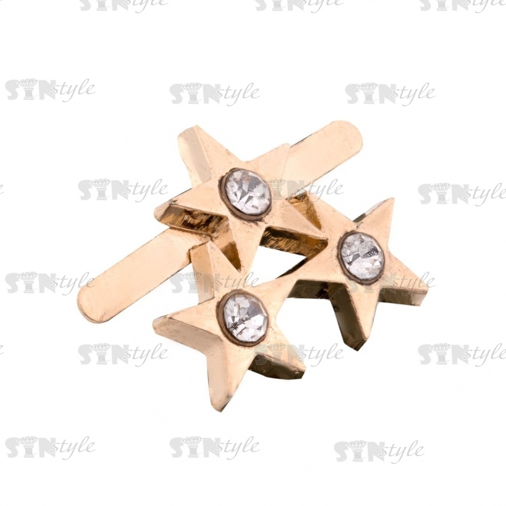 Брошь металлическая со стразами, крепление усики, цвет золото+белые стразы, размер 17х14 мм