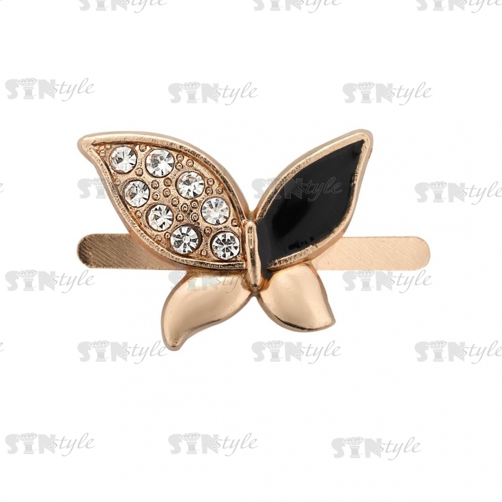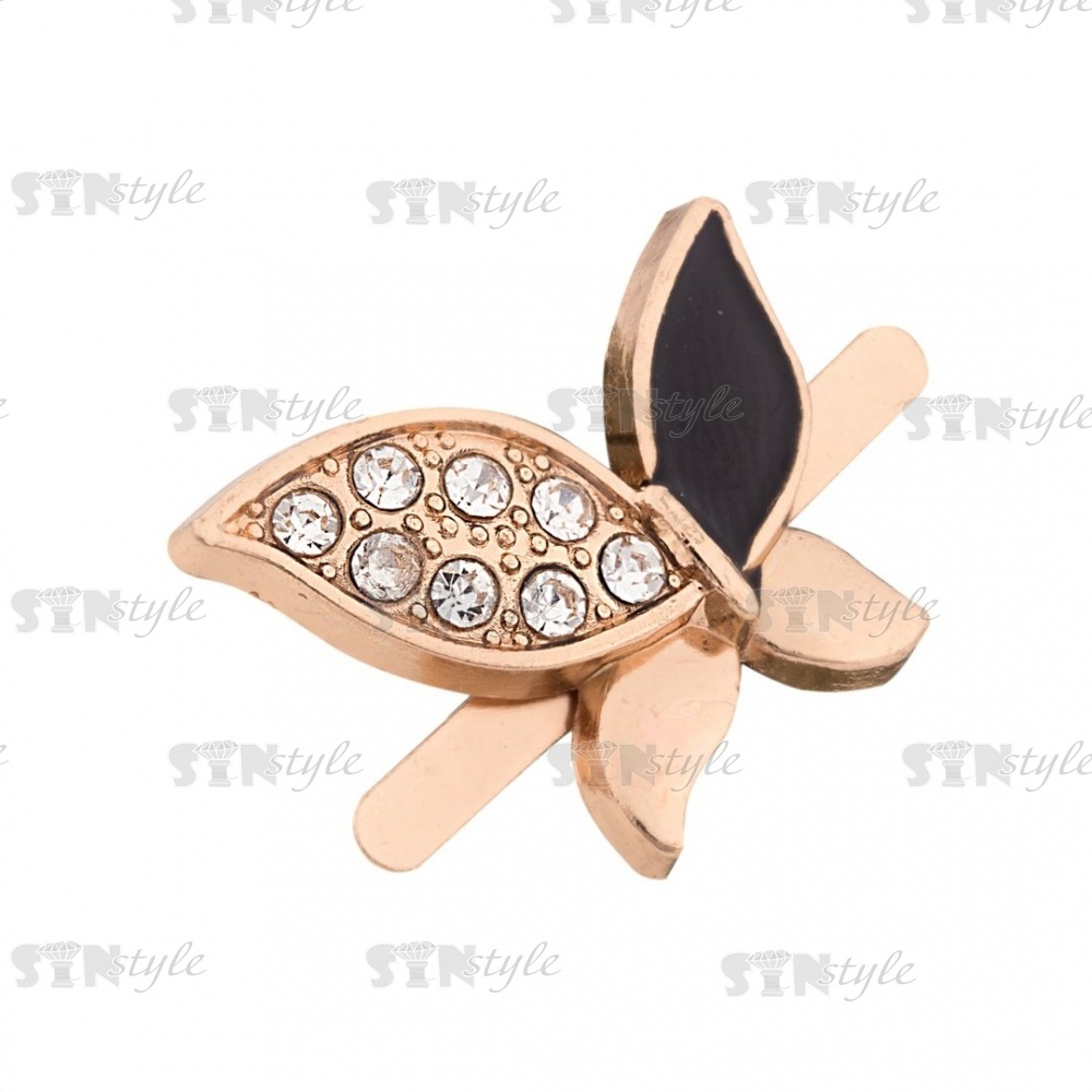 Брошь металлическая, крепление усики, цвет золотой+черный+белые стразы,размер 23х18 мм