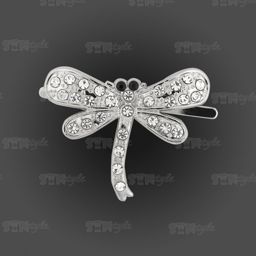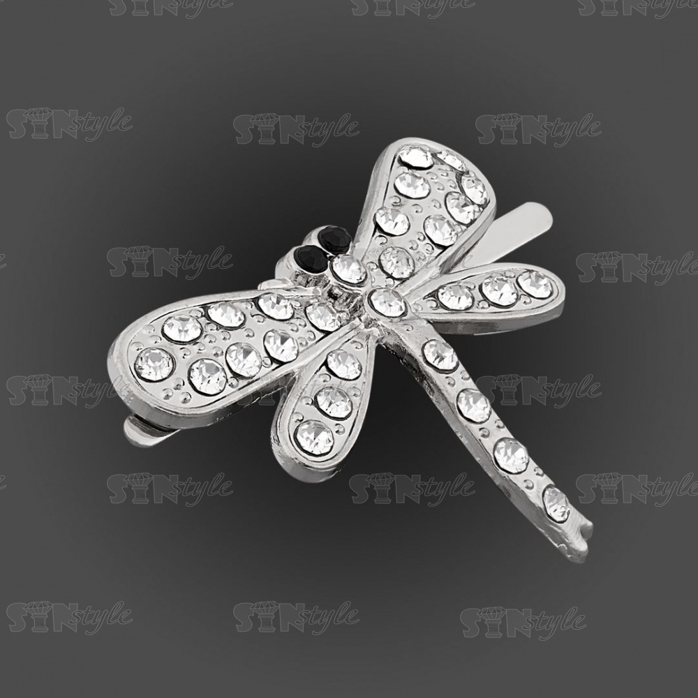 Брошь металлическая со стразами, крепление усики, цвет никель+белые стразы, размер 35х30 мм