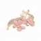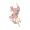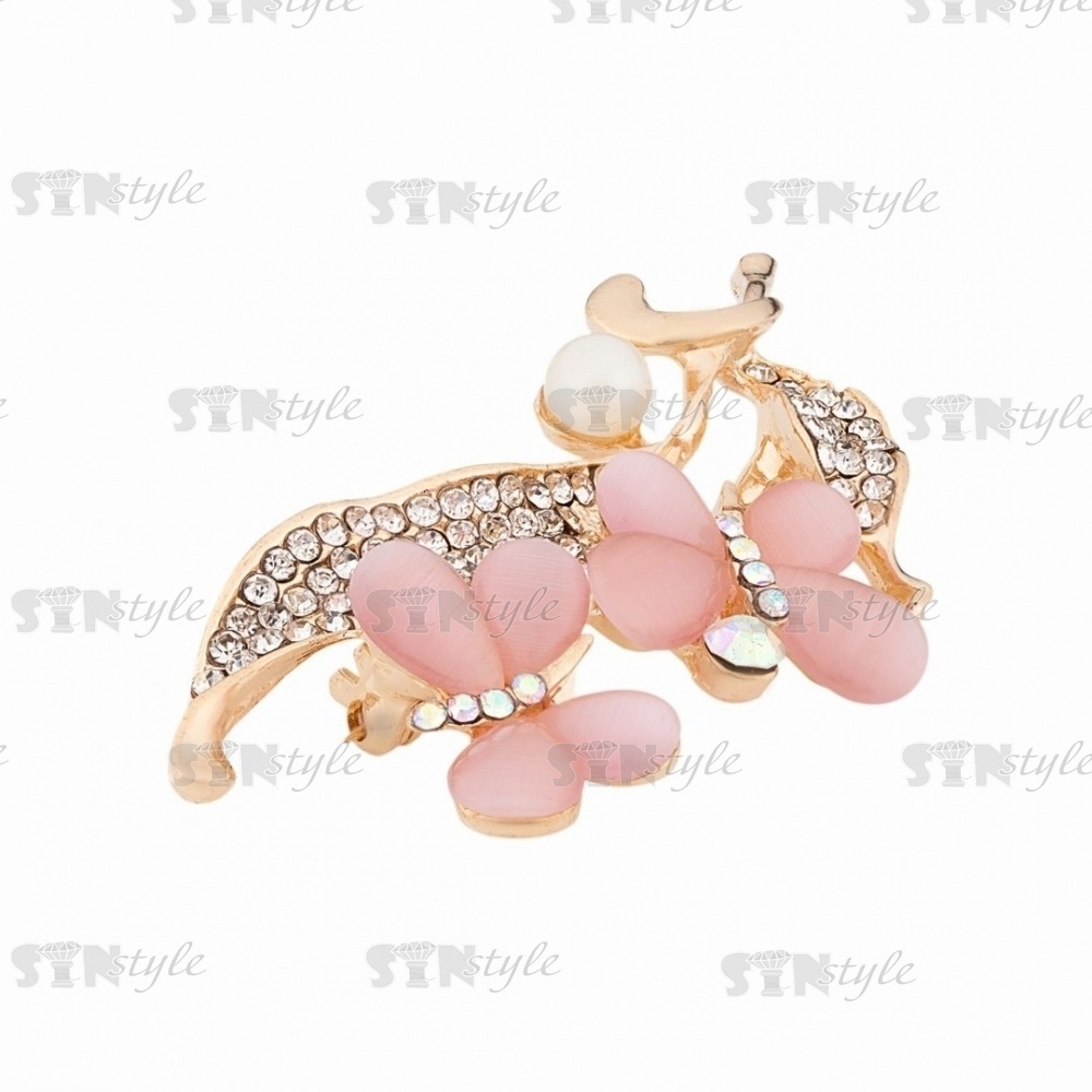 Брошь металлическая со стразами, застежка булавка,цвет золотой+белые/розовые стразы+белая бусина, размер 30х57 мм