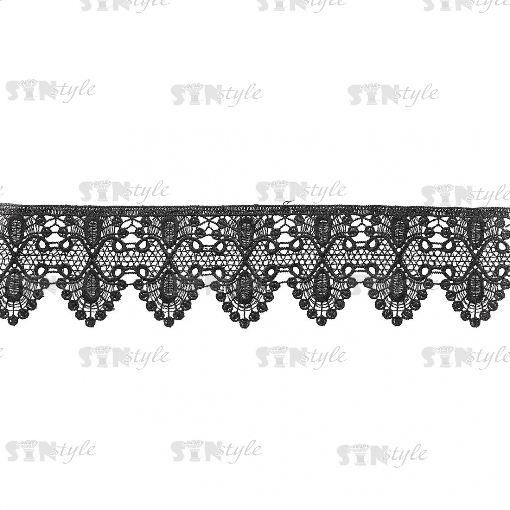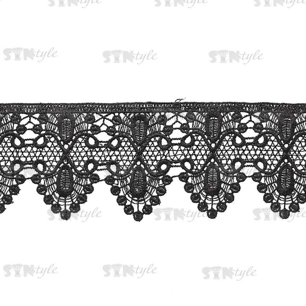 Кружево ажурное с нежным причудливым орнаментом и фестонами по краю, ширина 80 мм, цвет черный, намотка 15 ярдов