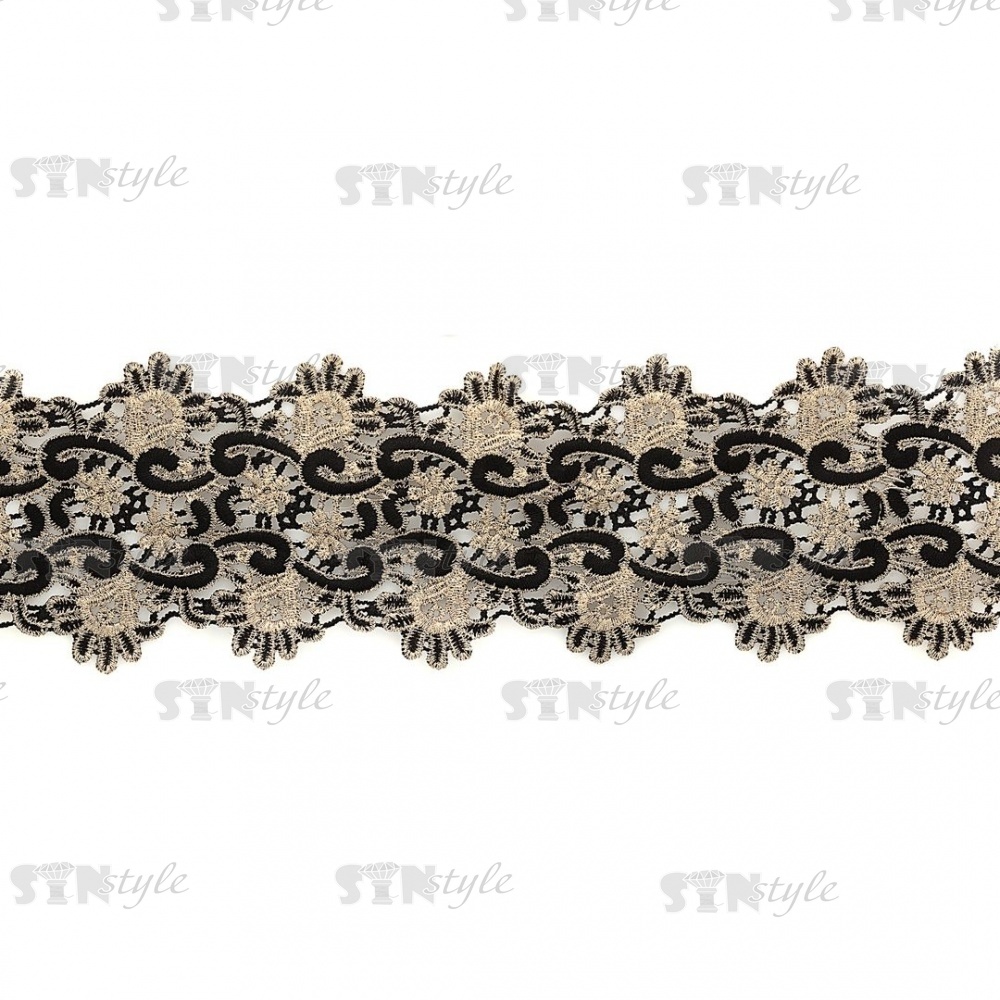 Кружево ажурное, ширина 93 мм, цвет золотой+черный, намотка 10 ярдов