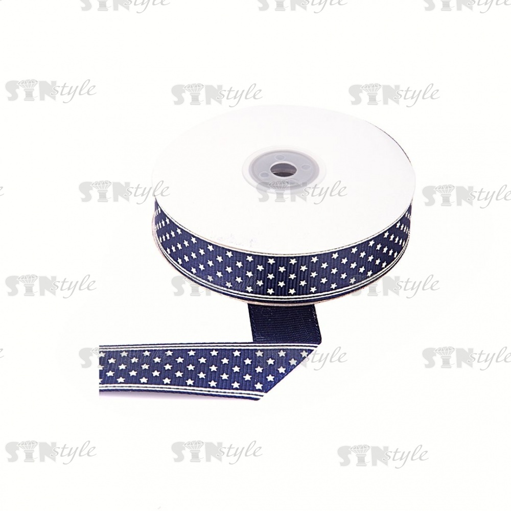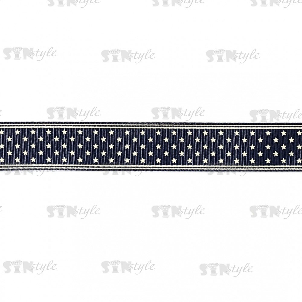 Лента репсовая, с принтом "звездочки", ширина 20 мм, цвет темно-синий, намотка 20 ярдов