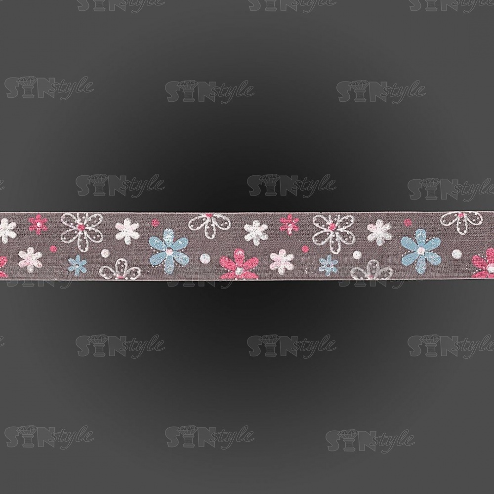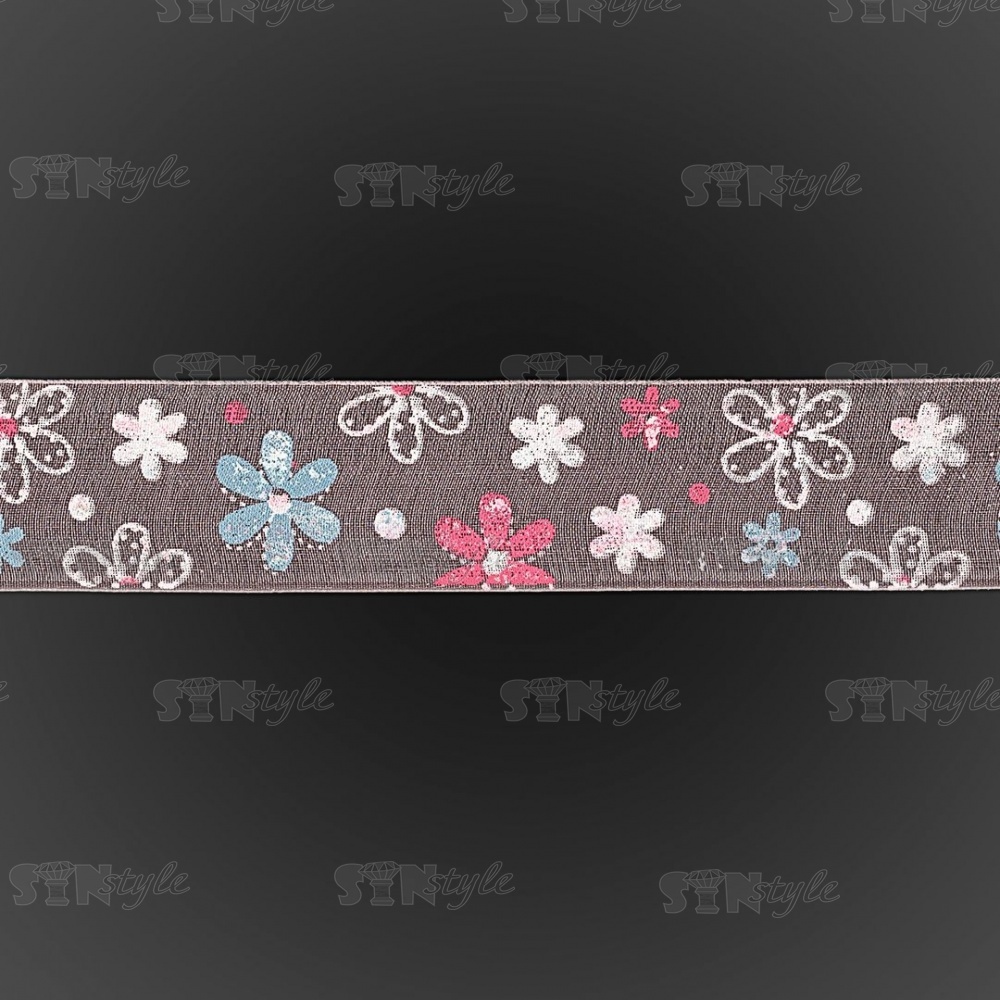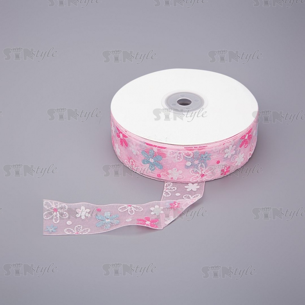 Декоративная лента капроновая с цветочным принтом, ширина 25 мм, намотка 50 ярдов, цвет розовый