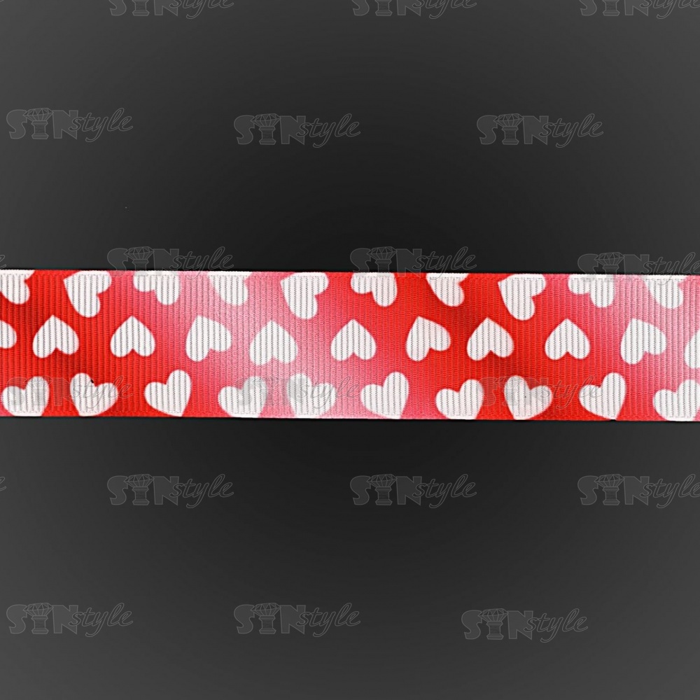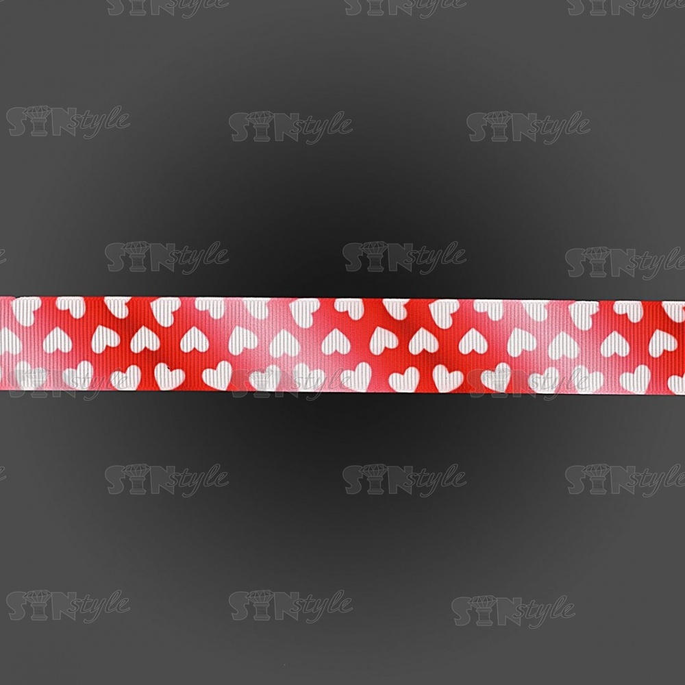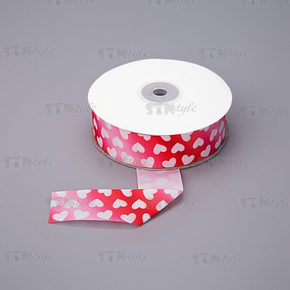 Лента репсовая, с принтом "сердечки", ширина 25 мм, намотка 20 ярдов