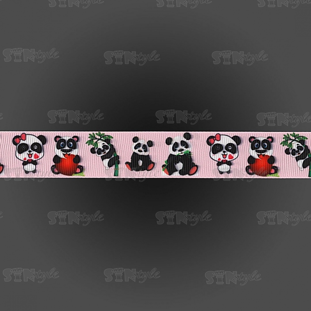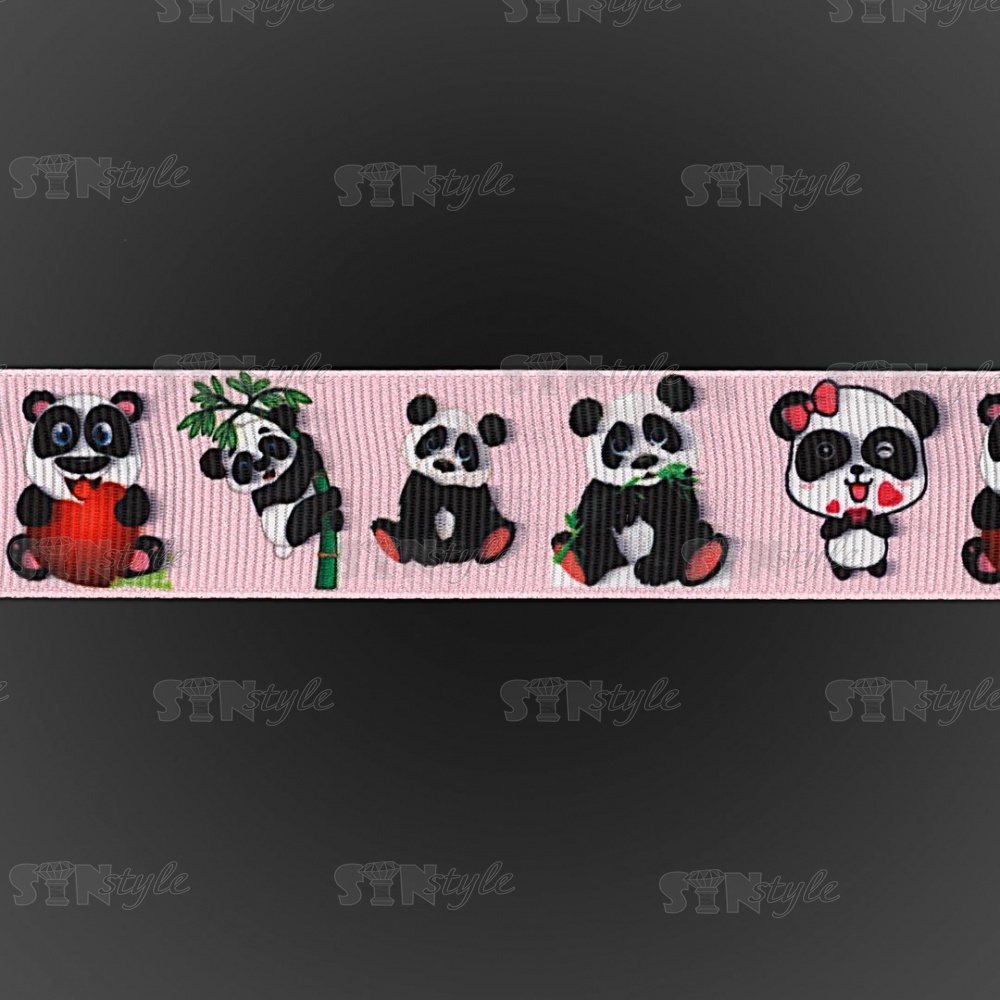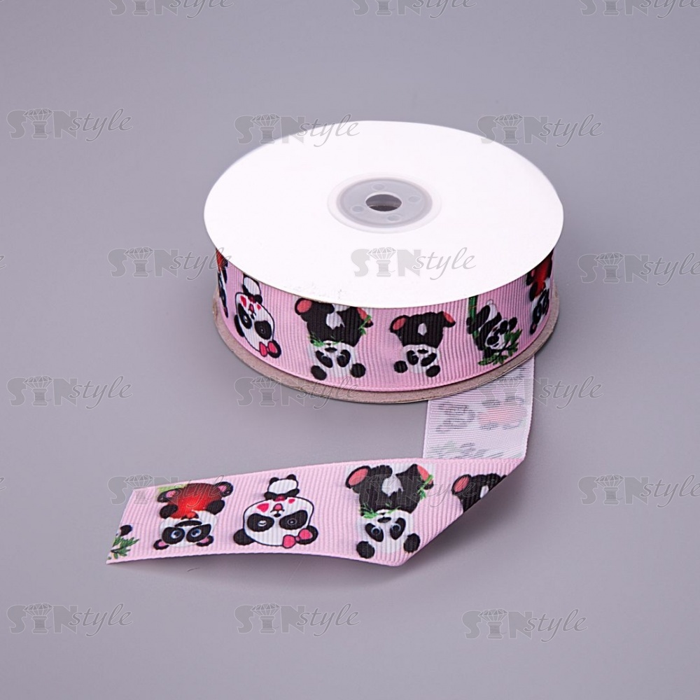 Лента репсовая, с принтом "панда", ширина 25 мм, цвет розовый, намотка 20 ярдов