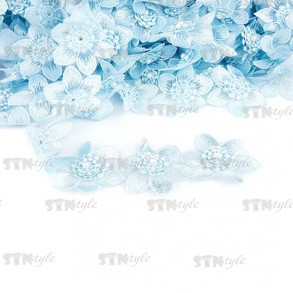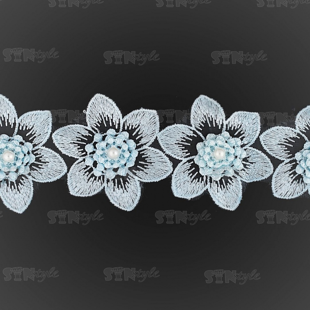 Цветочки из капроновой ленты, ширина 60 мм, намотка 20 ярдов, цвет голубой (№15)