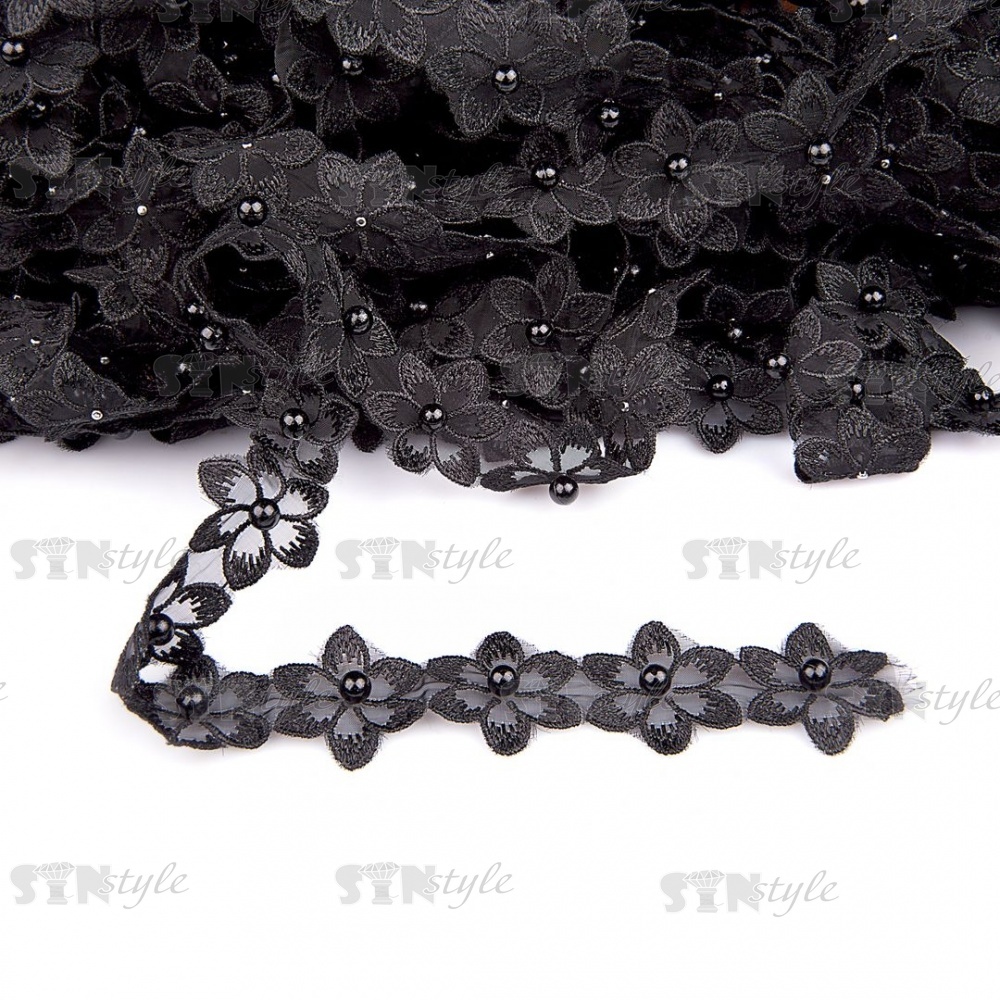 Цветочки из капроновой ленты, размер 30 мм, намотка 20 ярдов, цвет черный (#6)