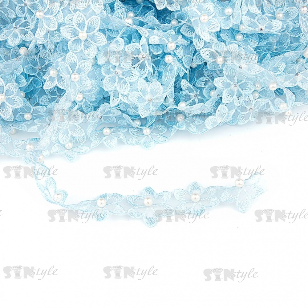 Цветочки из капроновой ленты, размер 30 мм, намотка 20 ярдов.цвет голубой (№15)