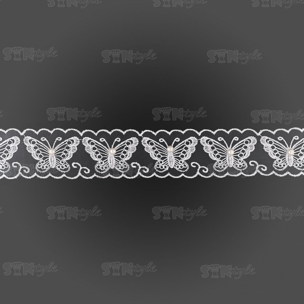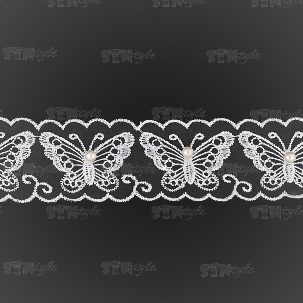Бабочки из капроновой ленты, ширина 45 мм, намотка 20 ярдов, цвет белый (№ 7)