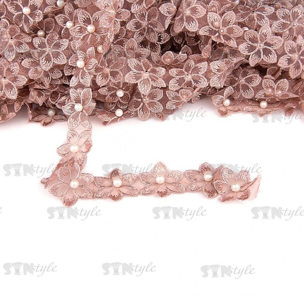 Цветочки из капроновой ленты, размер 30 мм, намотка 20 ярдов, цвет капучино