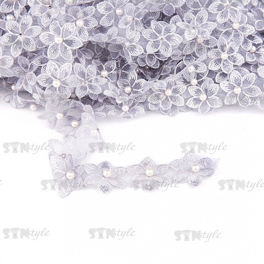 Цветочки из капроновой ленты, размер 30 мм, намотка 20 ярдов, цвет серый (#32)
