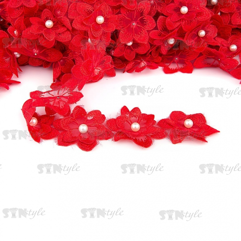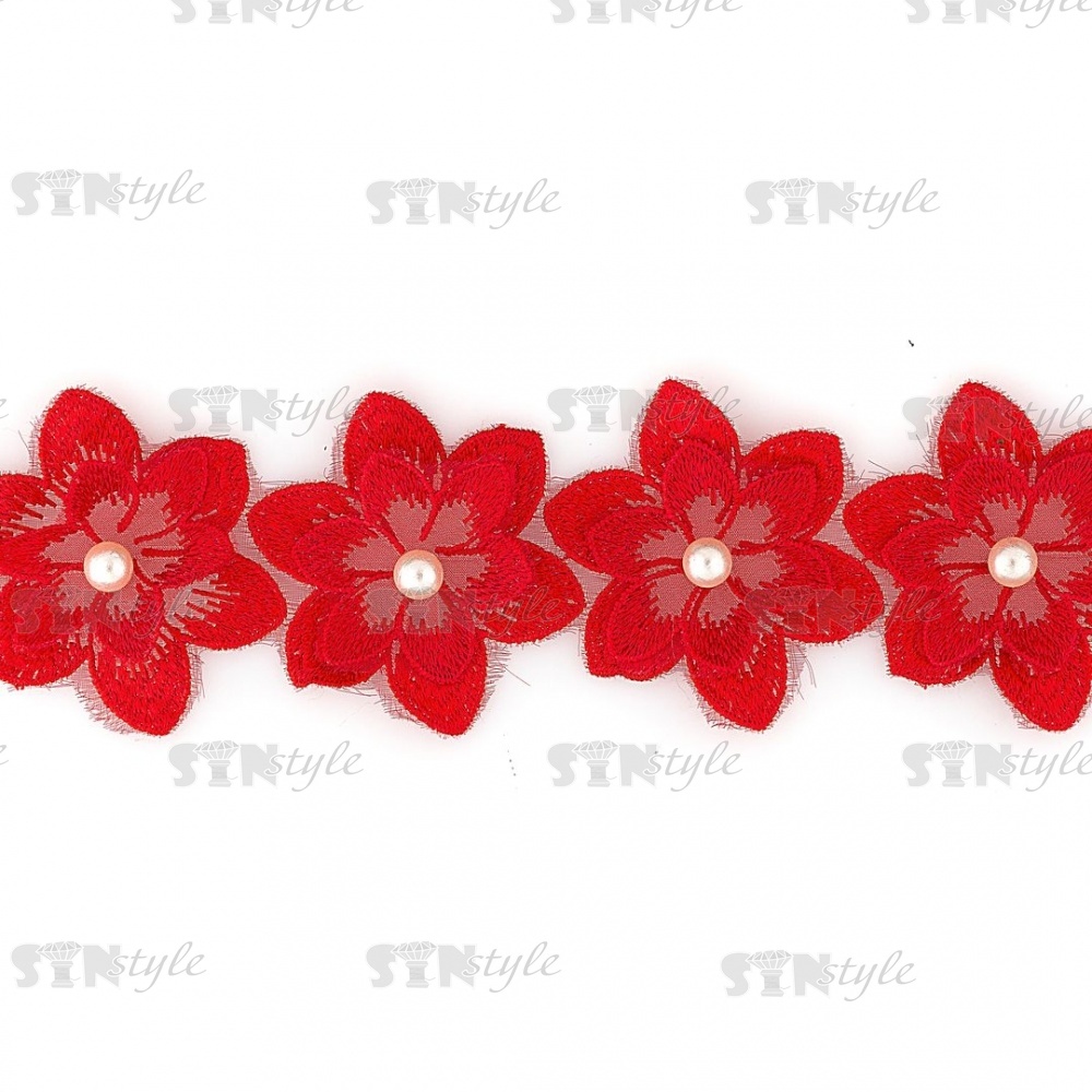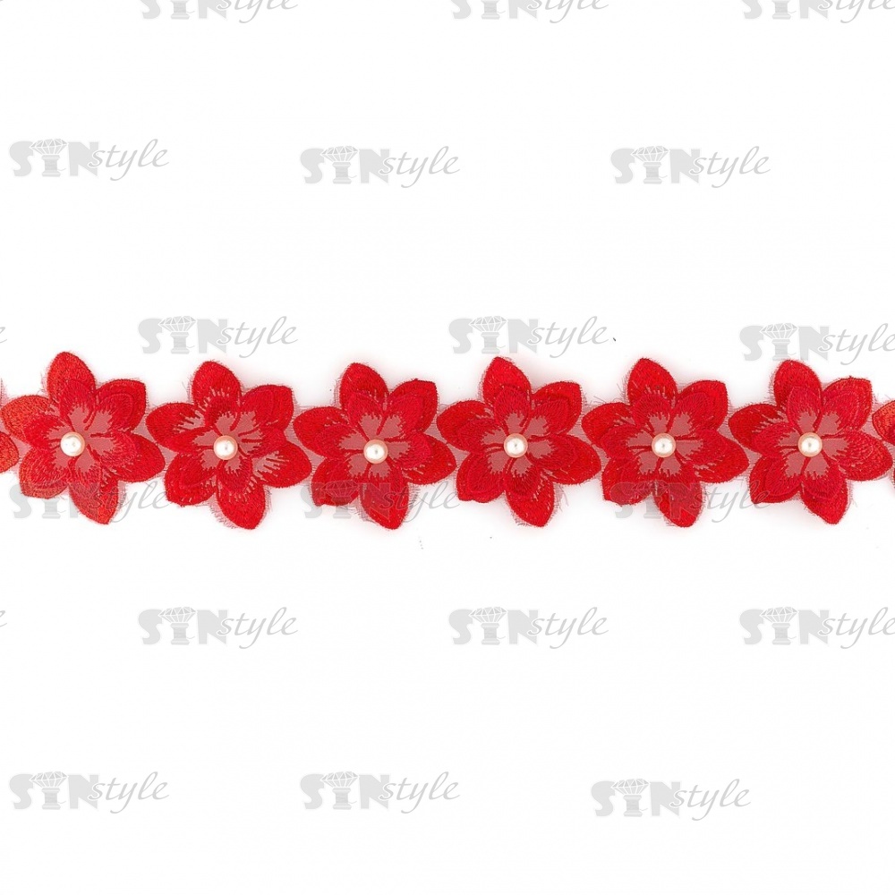 Цветочки из капроновой ленты, ширина 60 мм, намотка 20 ярдов.цвет красный (№ 4)