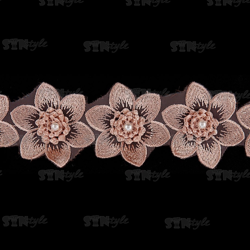 Цветочки из капроновой ленты, ширина 60 мм, намотка 20 ярдов, цвет капучино (№ 17)