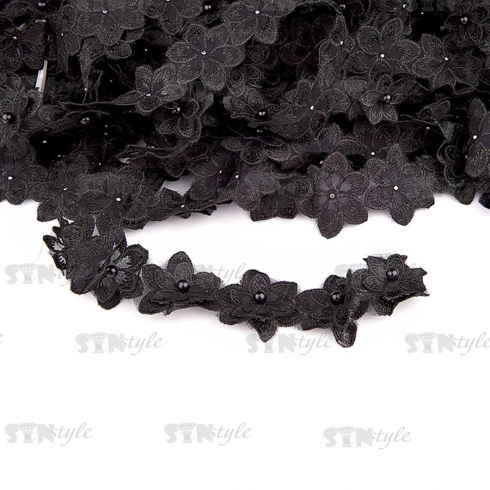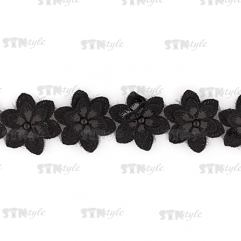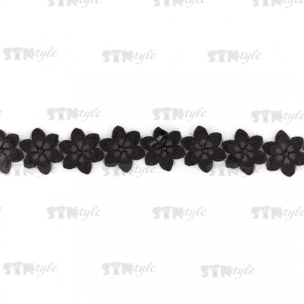 Цветочки из капроновой ленты, размер 45 мм, намотка 20 ярдов, цвет черный (#6)