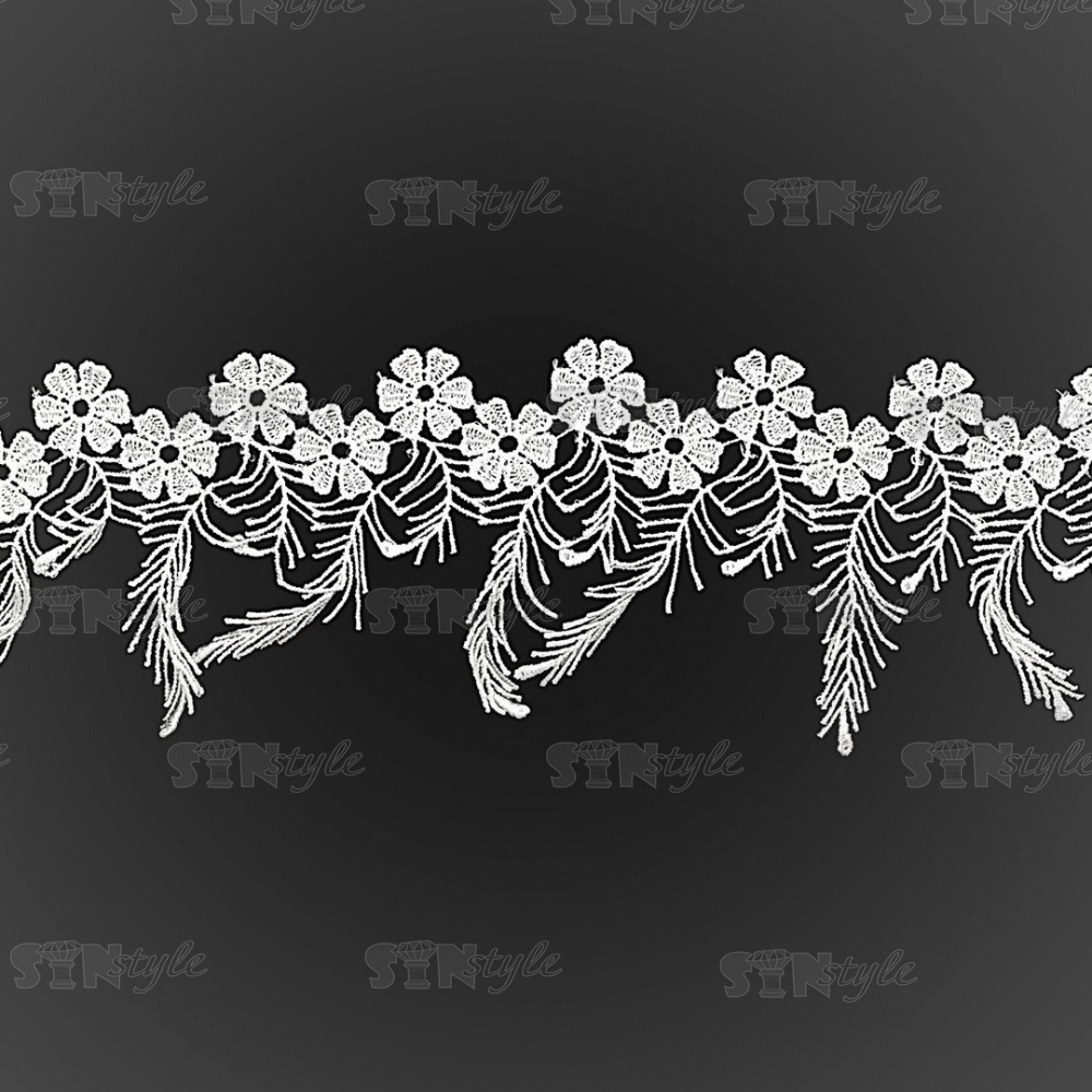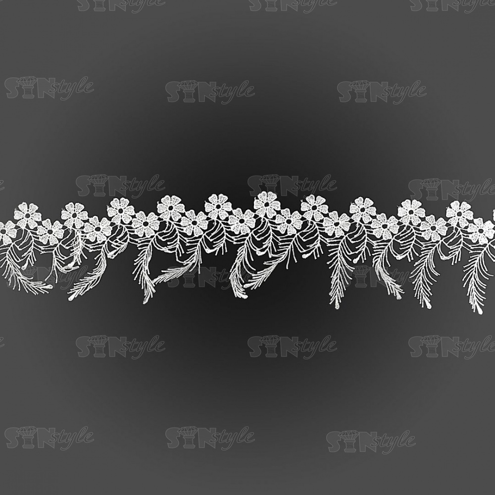 Кружево ажурное, нежная цветочная гирлянда с бахромчатыми листиками, ширина 50 мм, цвет белый, намотка 15 ярдов