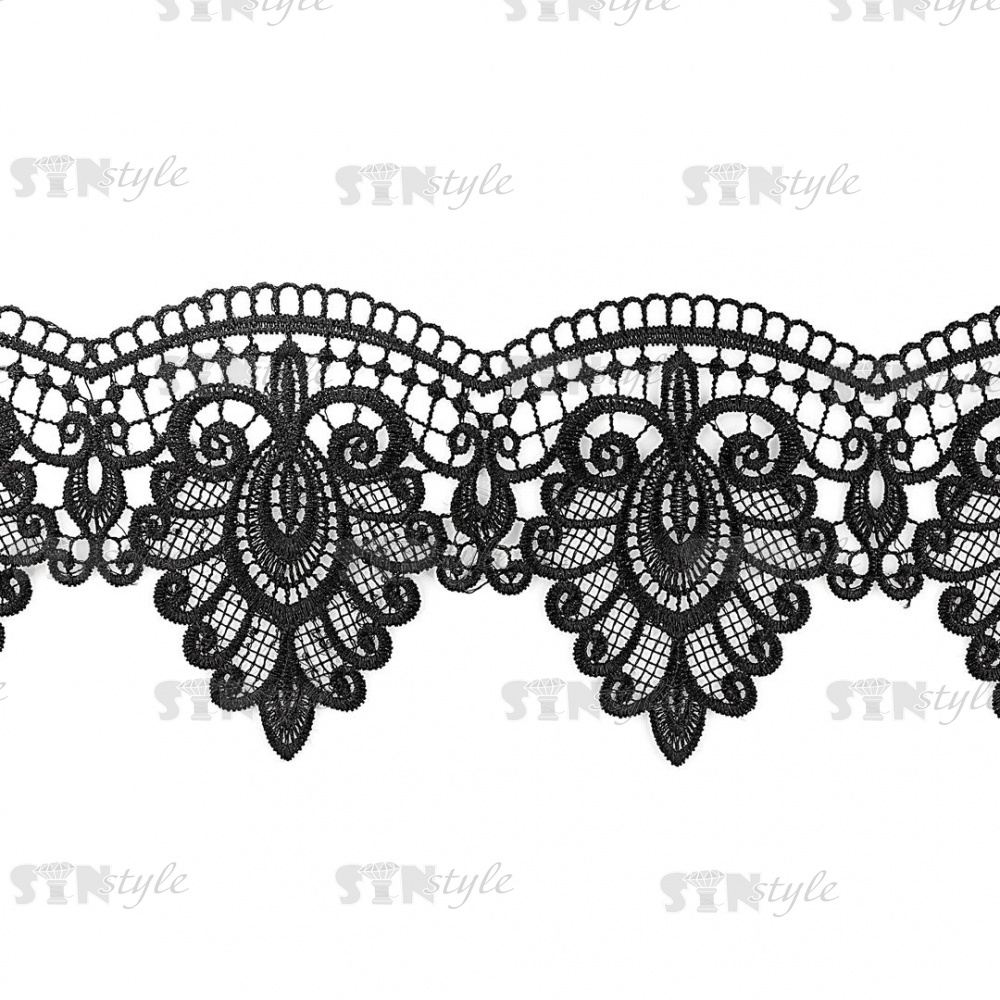 Кружево ажурное, ширина 130 мм, цвет черный, намотка 15 ярдов