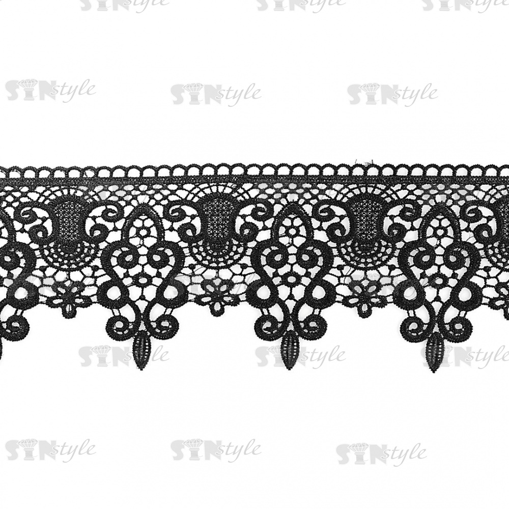 Кружево ажурное, ширина 110 мм, цвет черный, намотка 15 ярдов