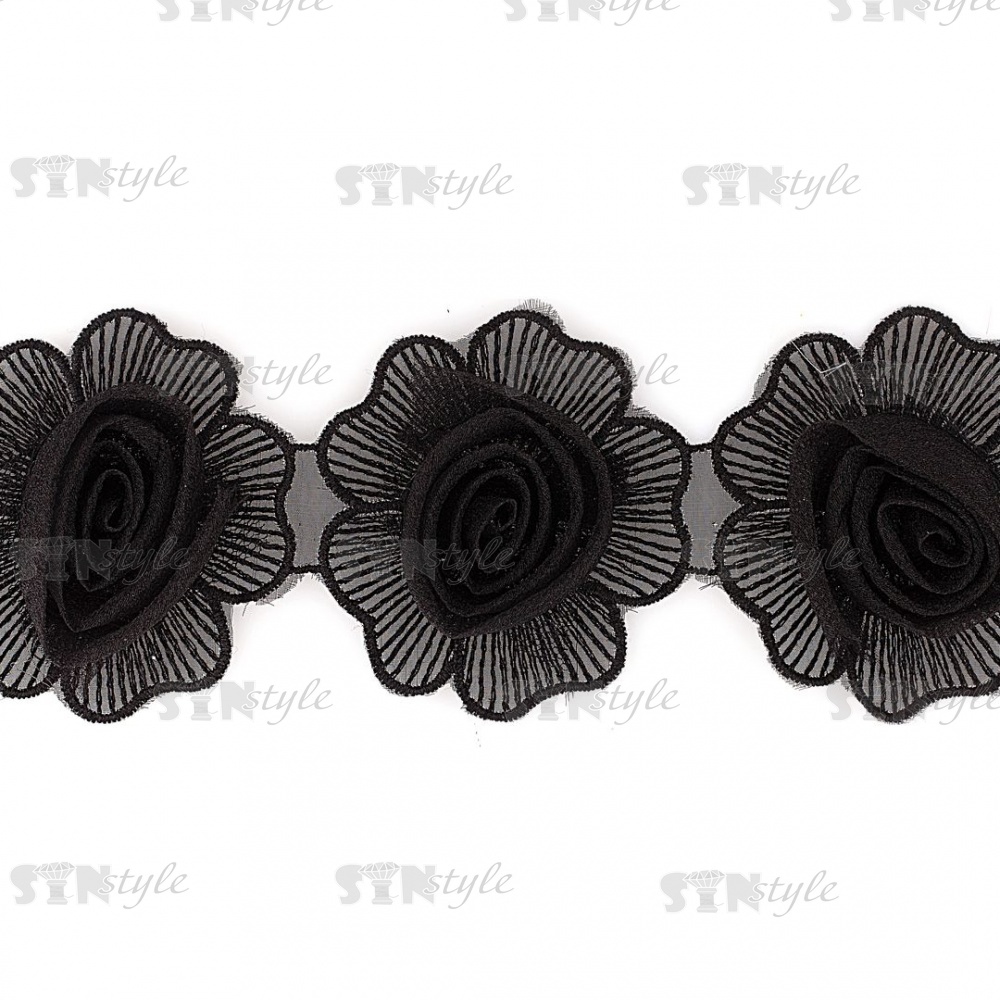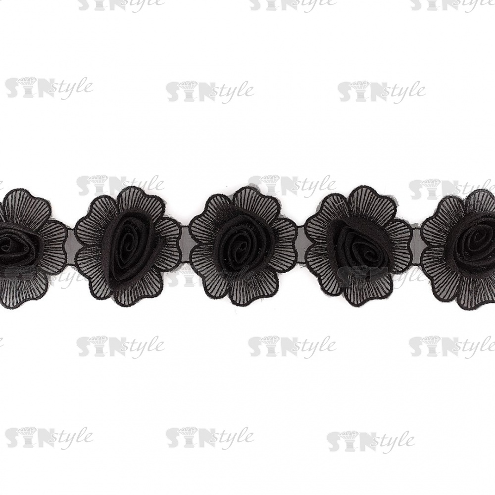 Цветочки из капроновой ленты, цвет черный, ширина 75 мм, намотка 15 ярдов