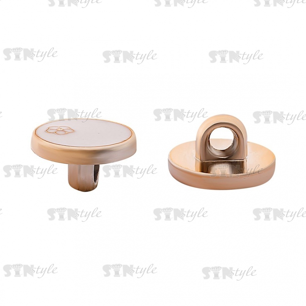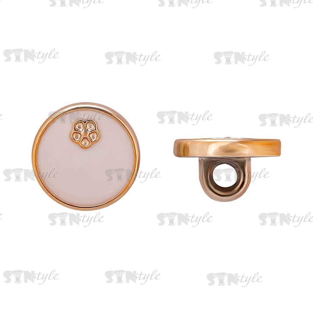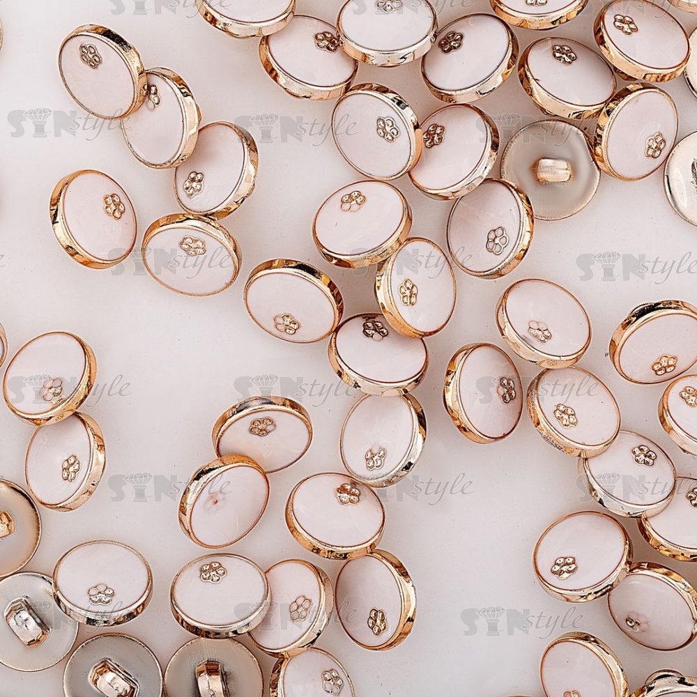 Пуговица пластиковая на ножке, размер 20L, золотая основа, белая шляпка с золотым цветком
