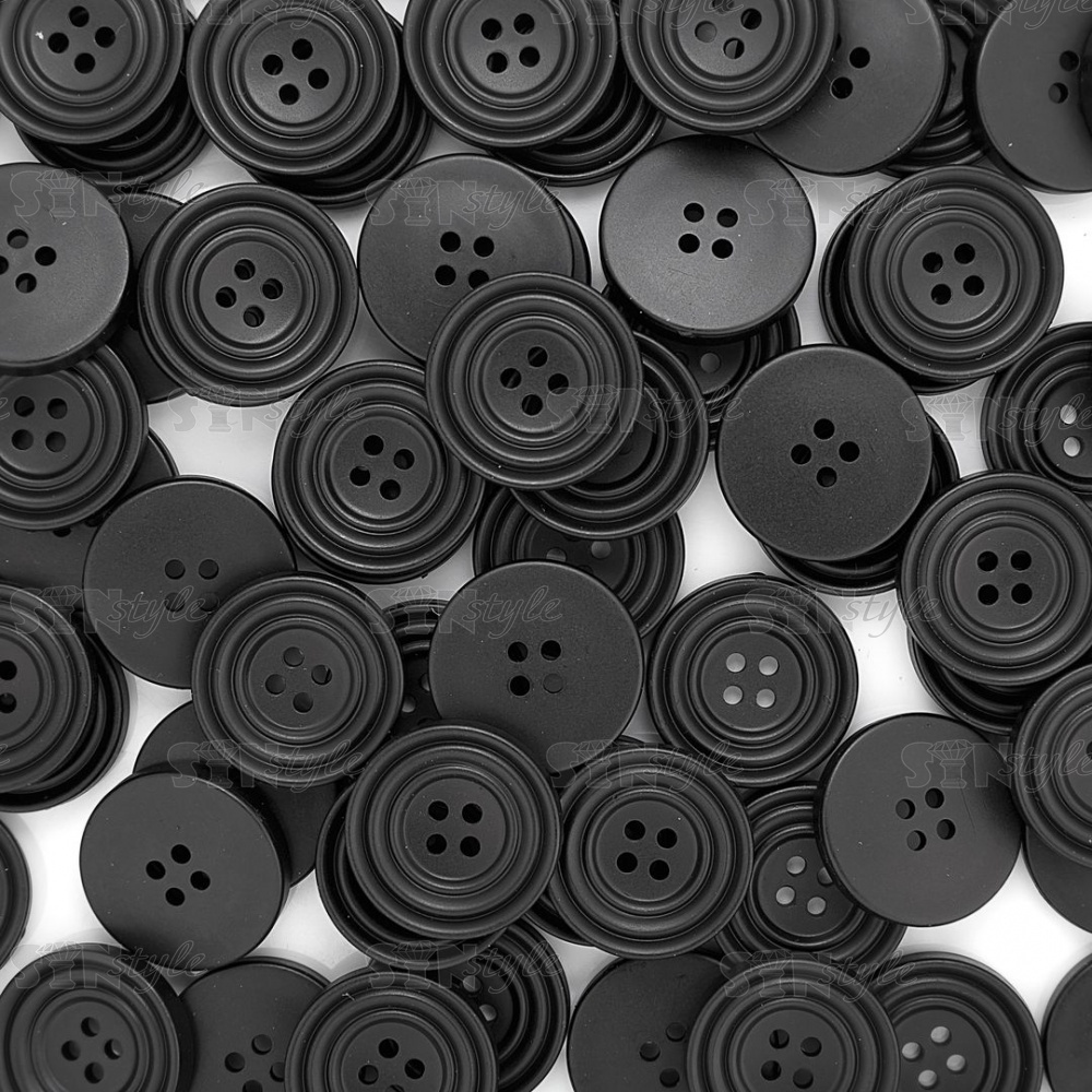 Пуговица пластиковая на четыре прокола, размер 40L, цвет черный