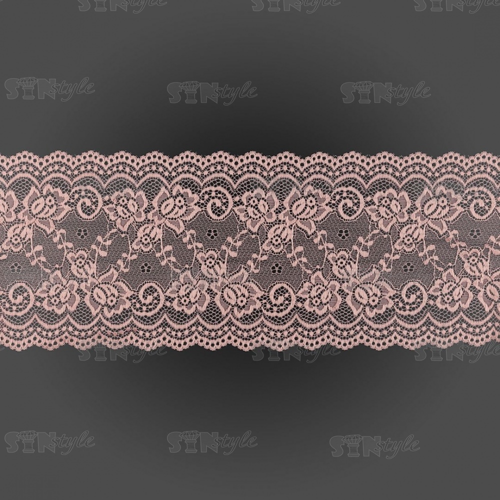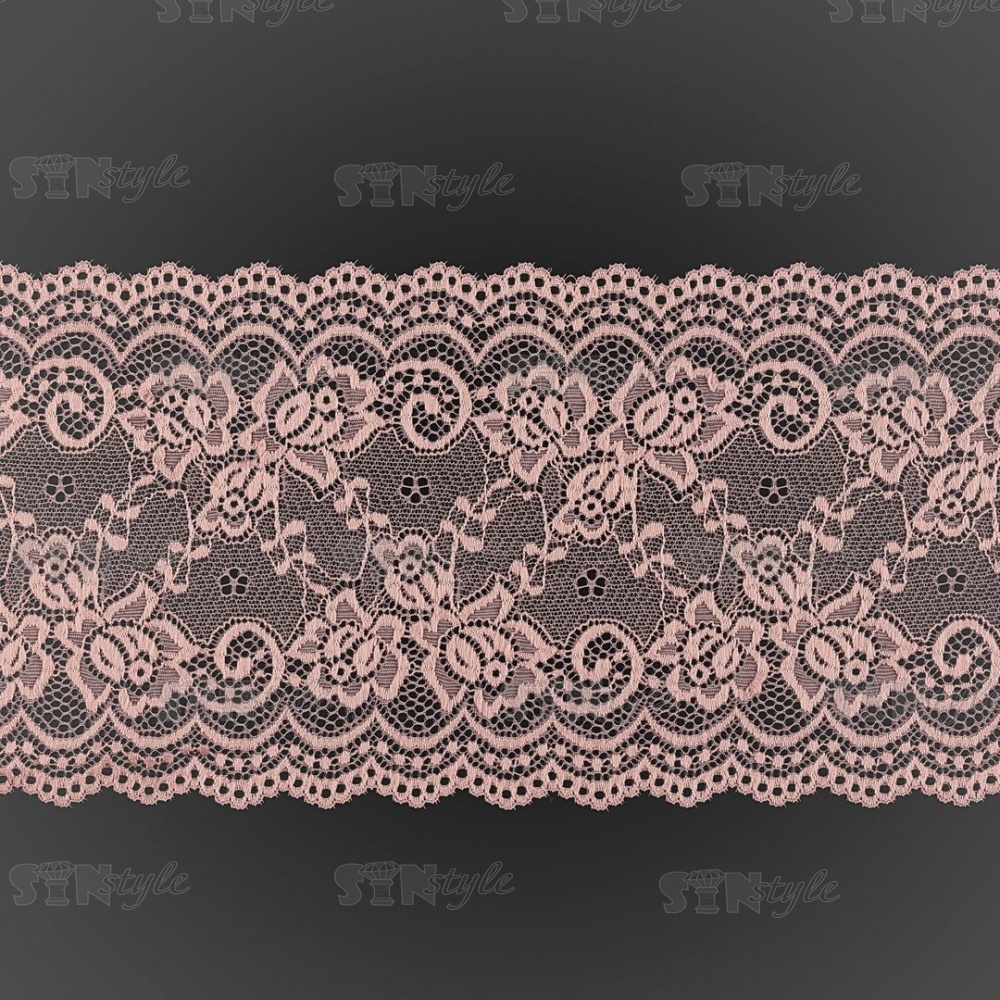 Кружево эластичное, ширина 180 мм, цвет грязно-розовый, намотка 15 ярдов