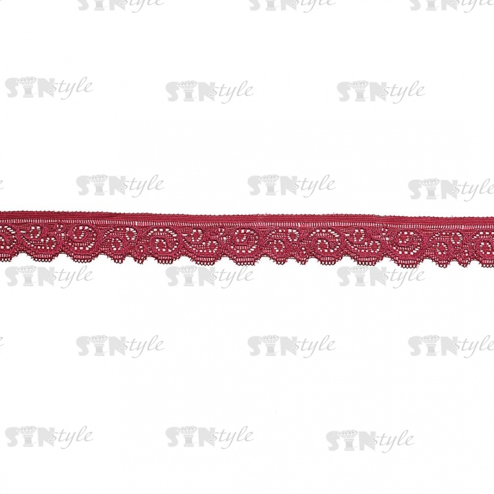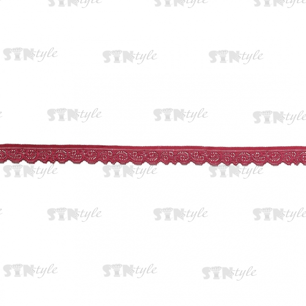 Кружево эластичное, ширина 25 мм, цвет бордовый, намотка 15 ярдов