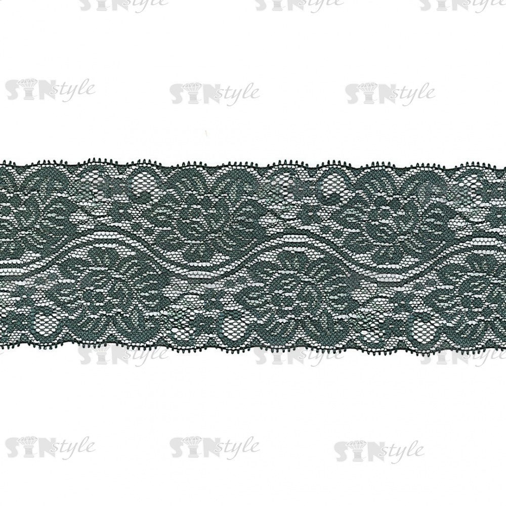 Кружево эластичное, ширина 80 мм, цвет зеленый, намотка 15 ярдов