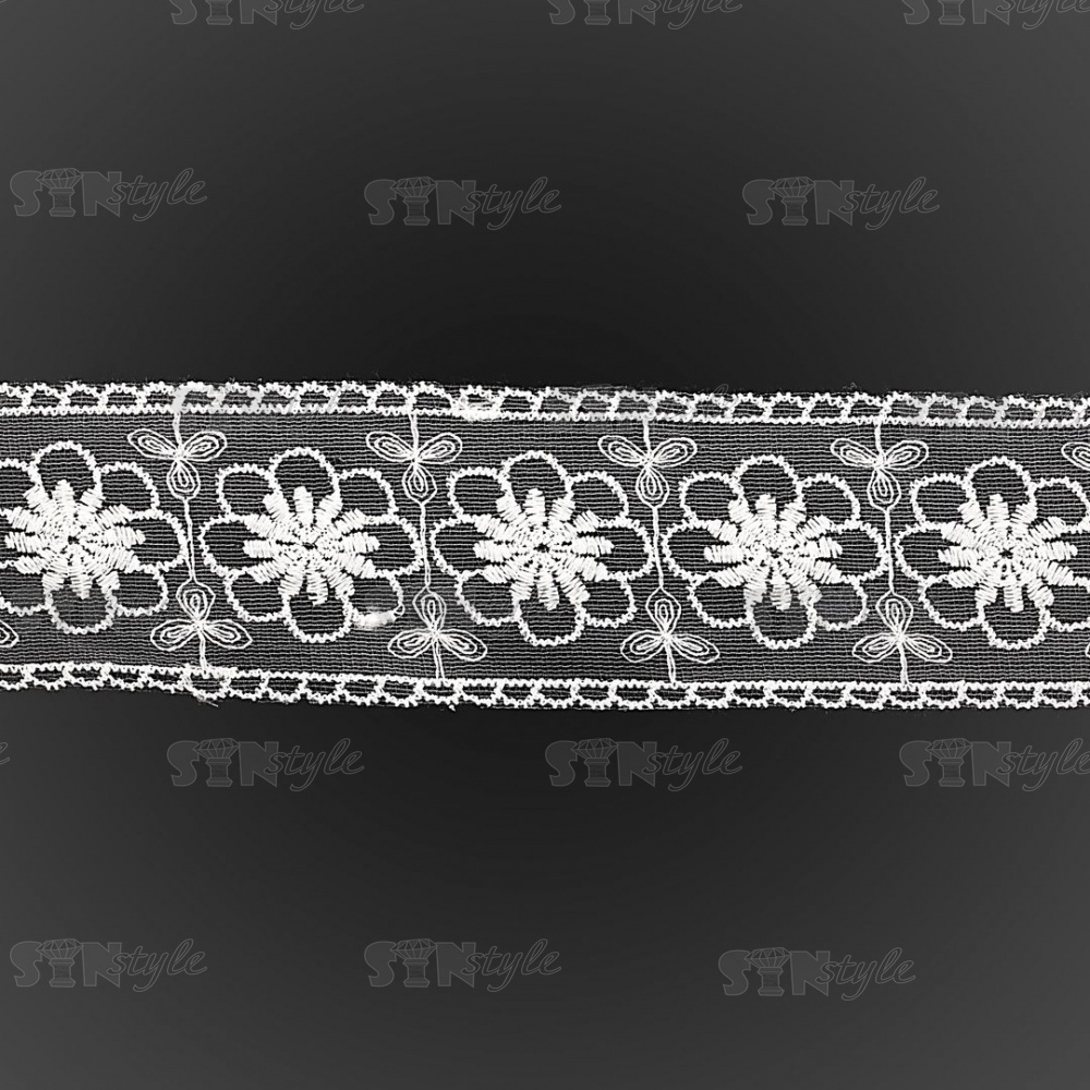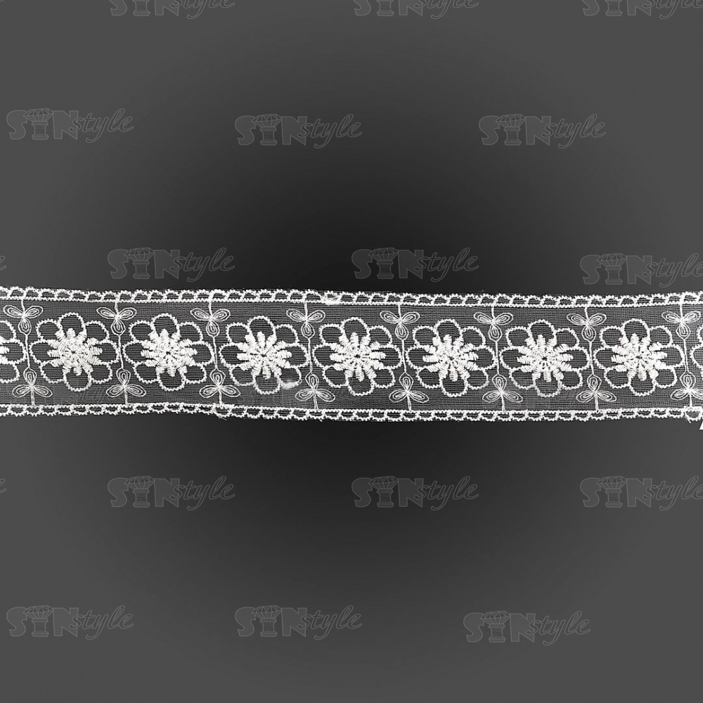 Кружево на сетке белого цвета с белой вышивкой, ширина 60 мм, намотка 15 ярдов