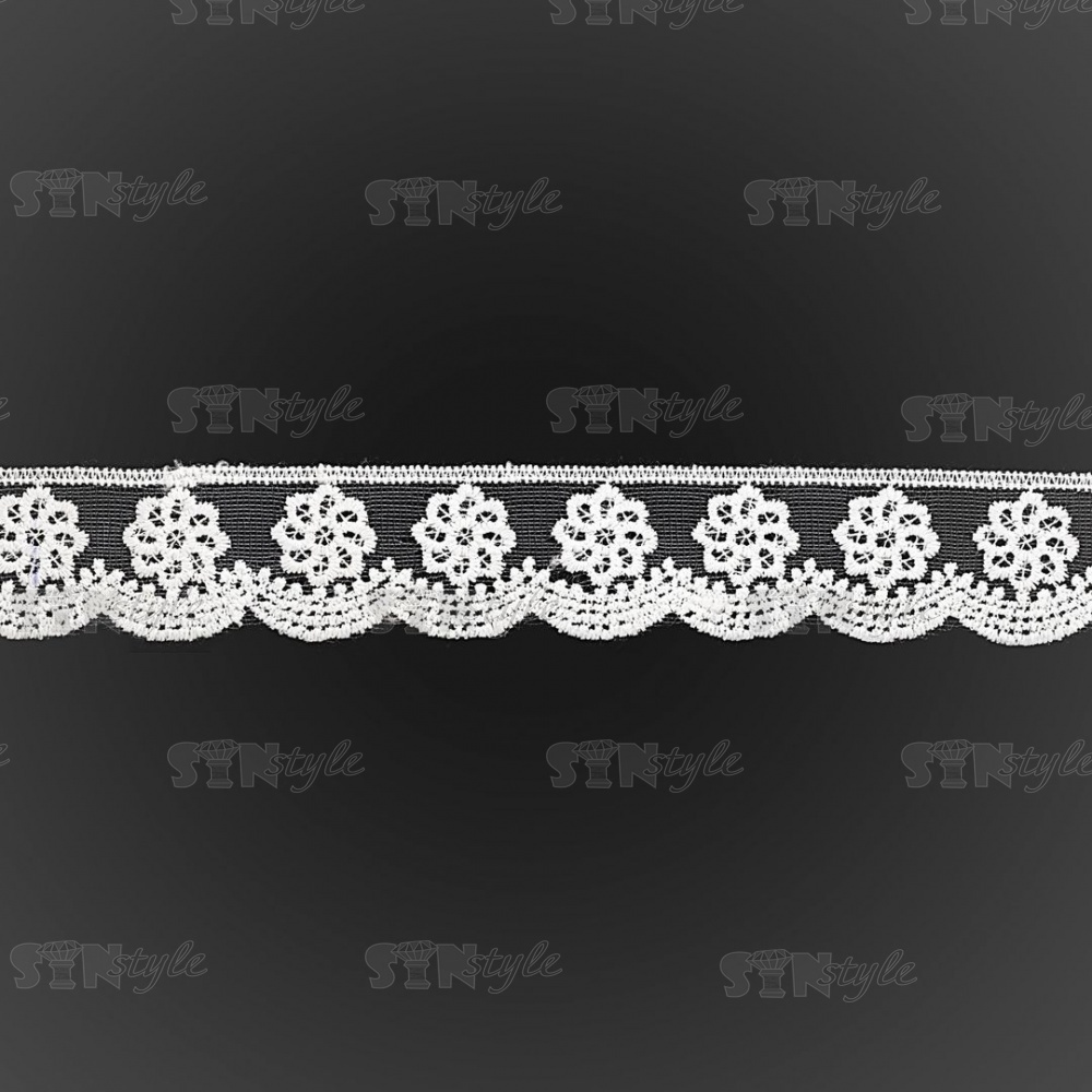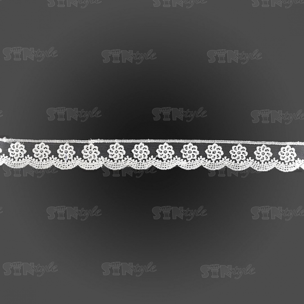 Кружево на сетке белого цвета с белой вышивкой, ширина 35 мм, намотка 15 ярдов