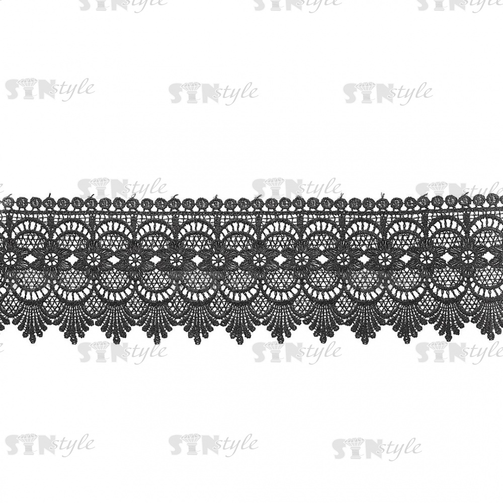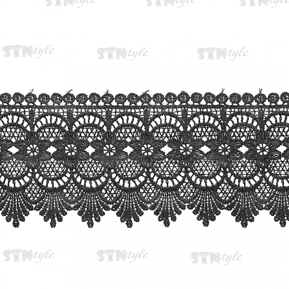 Кружево ажурное, ширина 85 мм, цвет черный, намотка 15 ярдов
