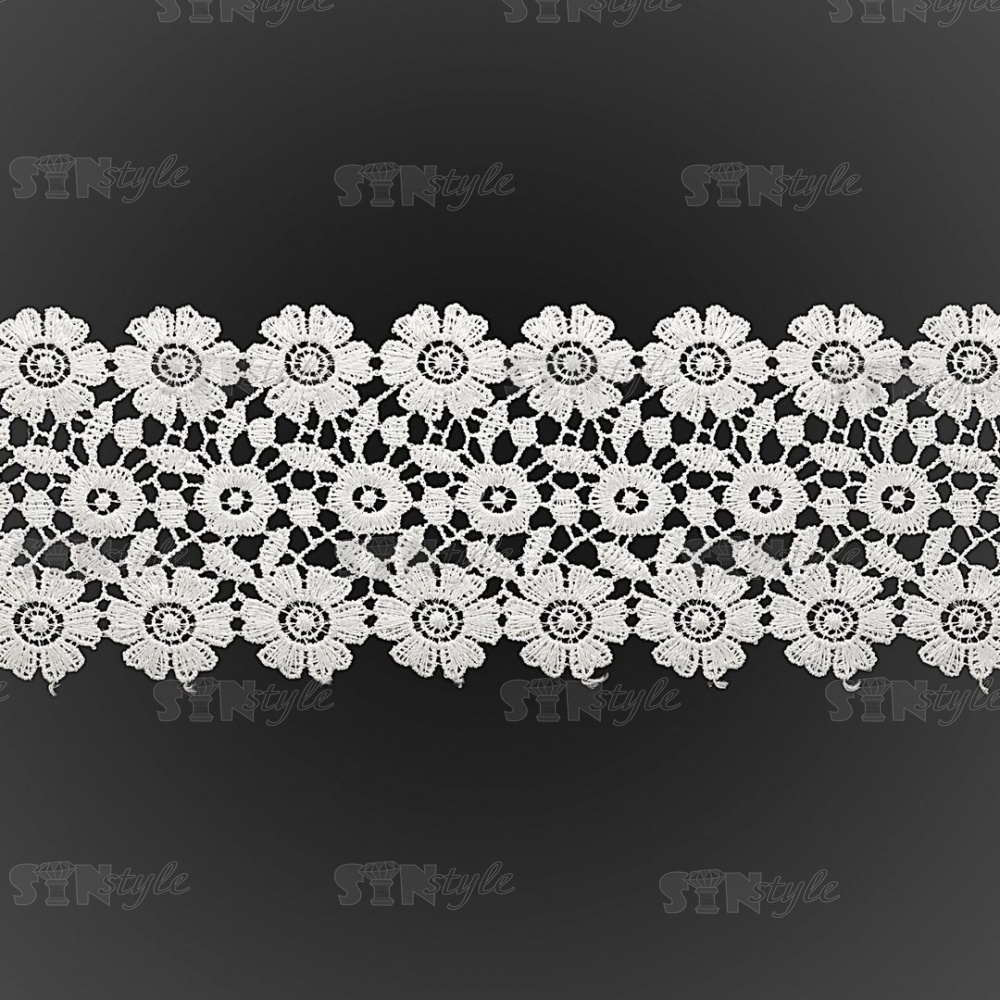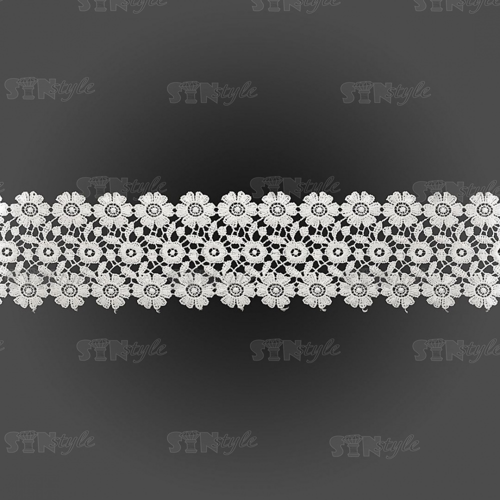 Кружево ажурное с нежным цветочным орнаментом, ширина 70 мм, цвет белый, намотка 15 ярдов
