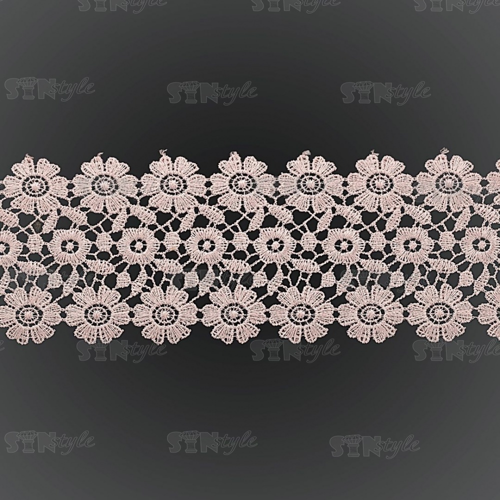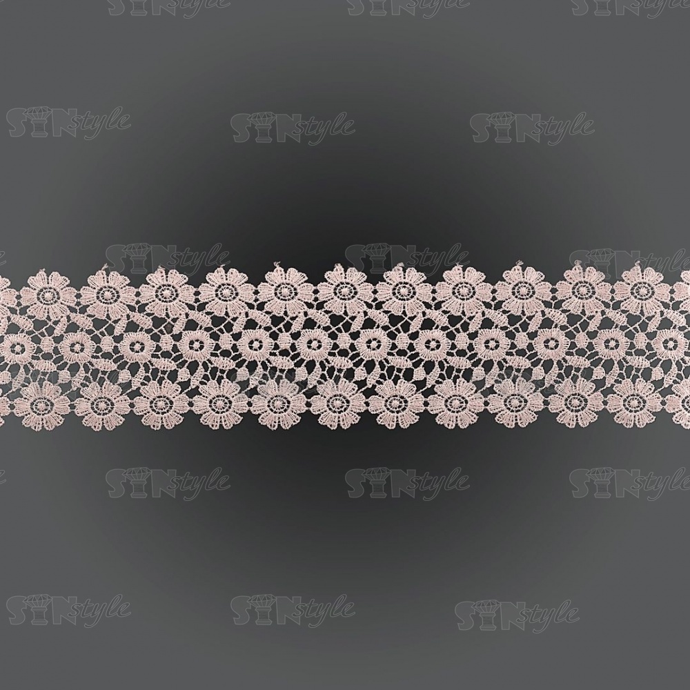 Кружево ажурное с нежным цветочным орнаментом, ширина 75 мм, цвет грязно-розовый, намотка 15 ярдов