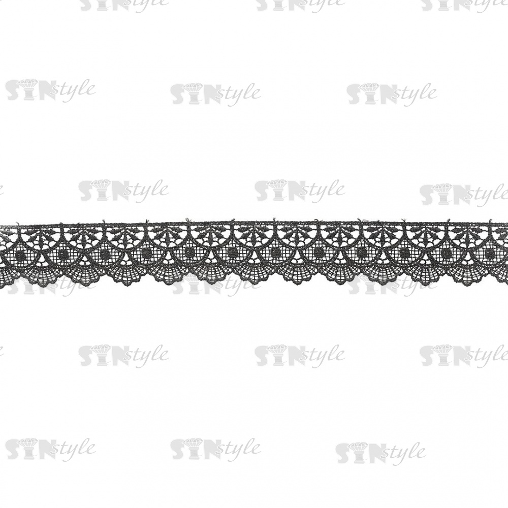 Кружево ажурное, ширина 35 мм, цвет черный, намотка 15 ярдов