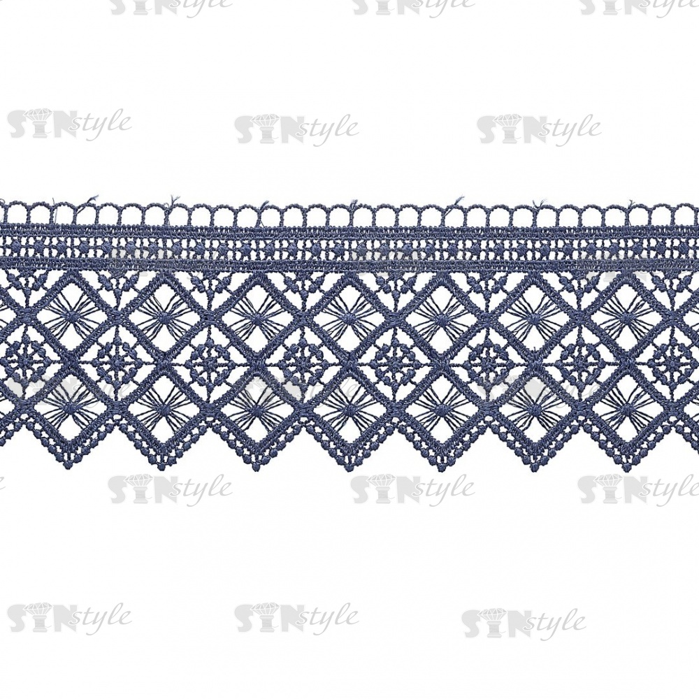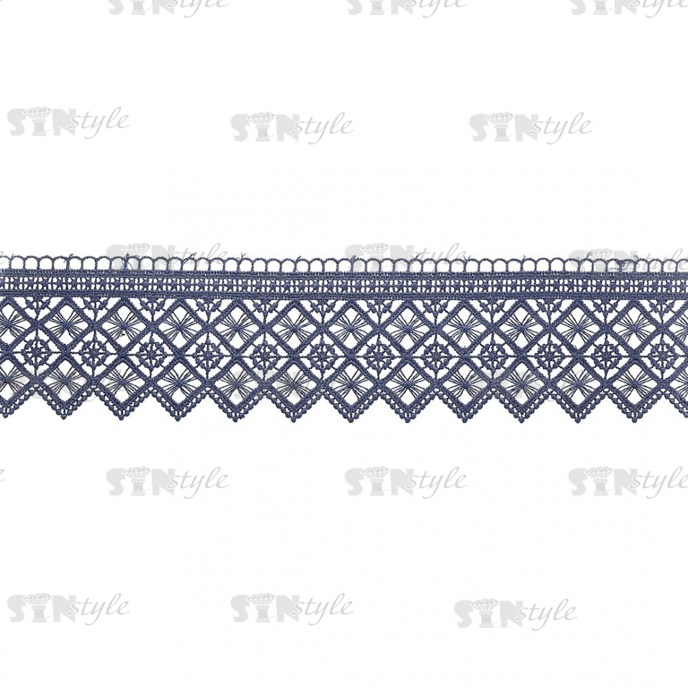 Кружево ажурное, тонкая красивая гирлянда с геометрическим узором и резным краем, ширина 75 мм, цвет темно-синий, намотка 15 ярдов