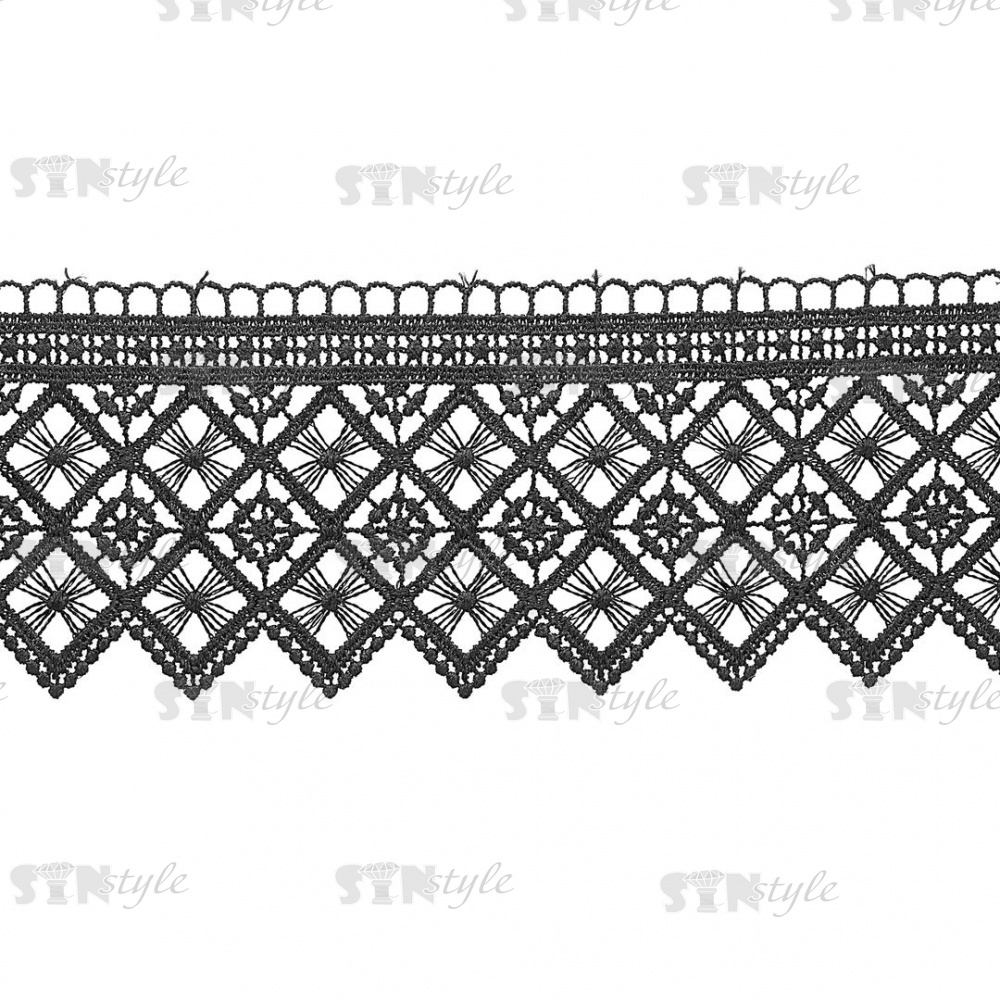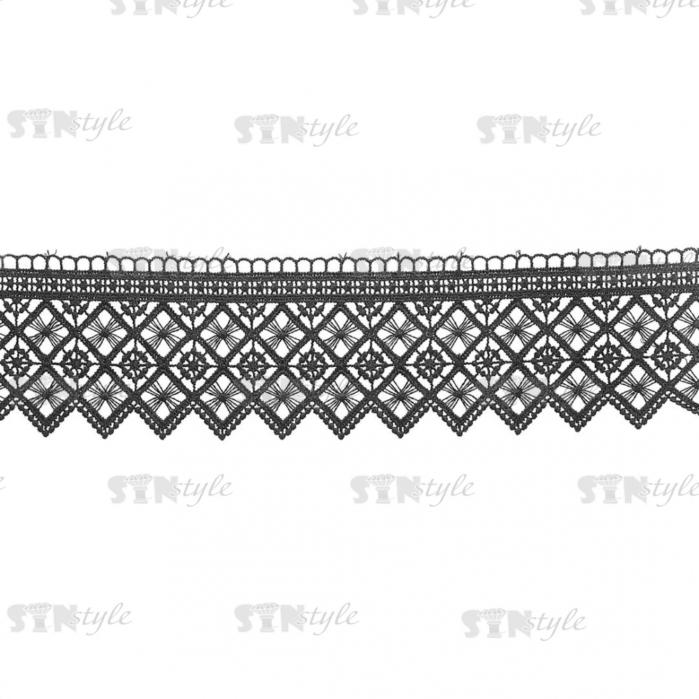 Кружево ажурное. тонкая красивая гирлянда с геометрическим узором и резным краем, ширина 83 мм цвет черный, намотка 15 ярдов,