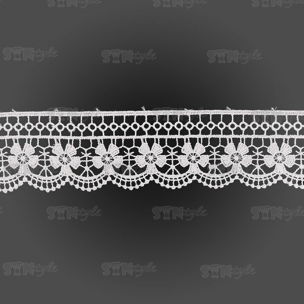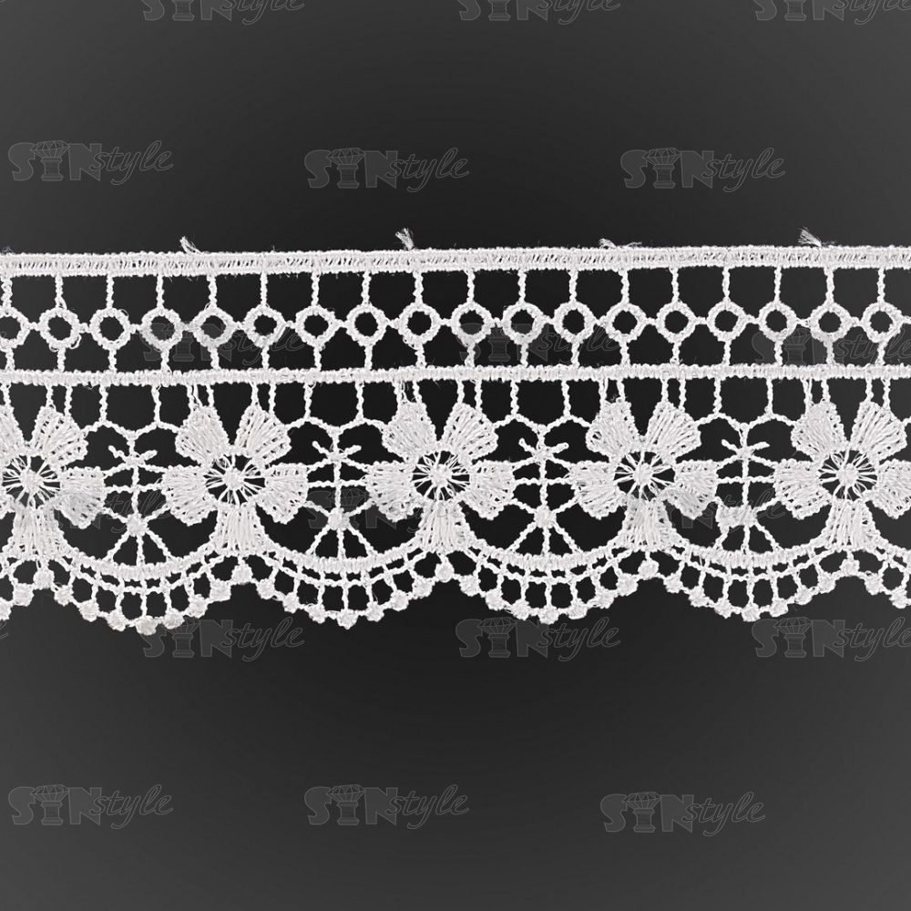 Кружево ажурное с цветочным узором и фестоном по краю, ширина 45 мм, цвет белый, намотка 15 ярдов