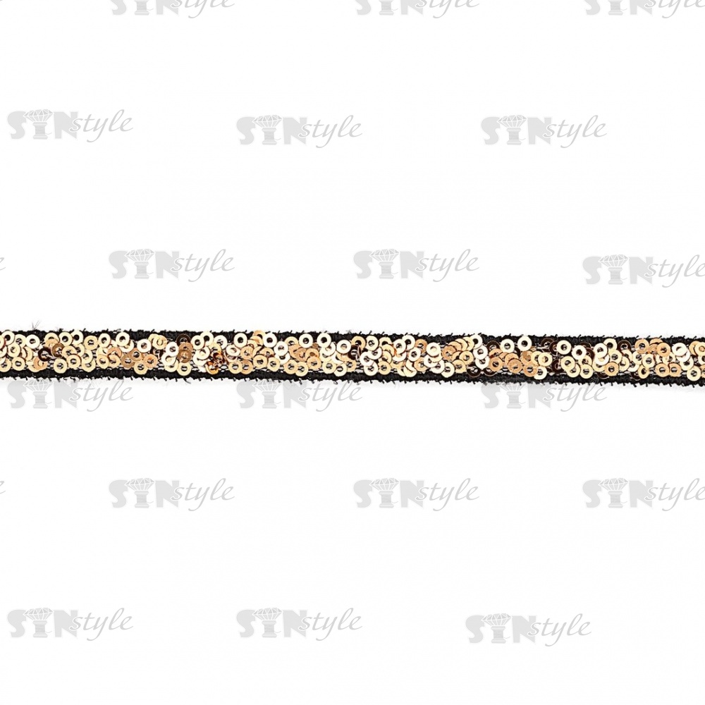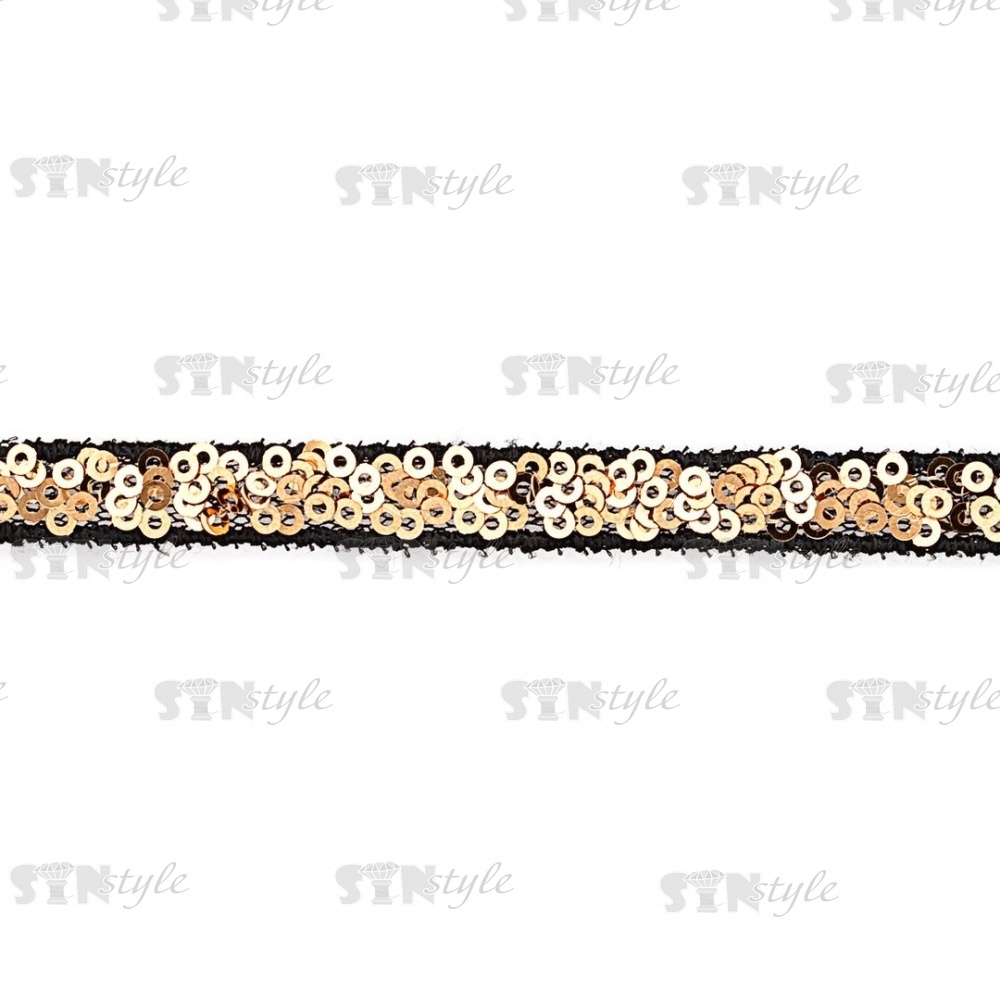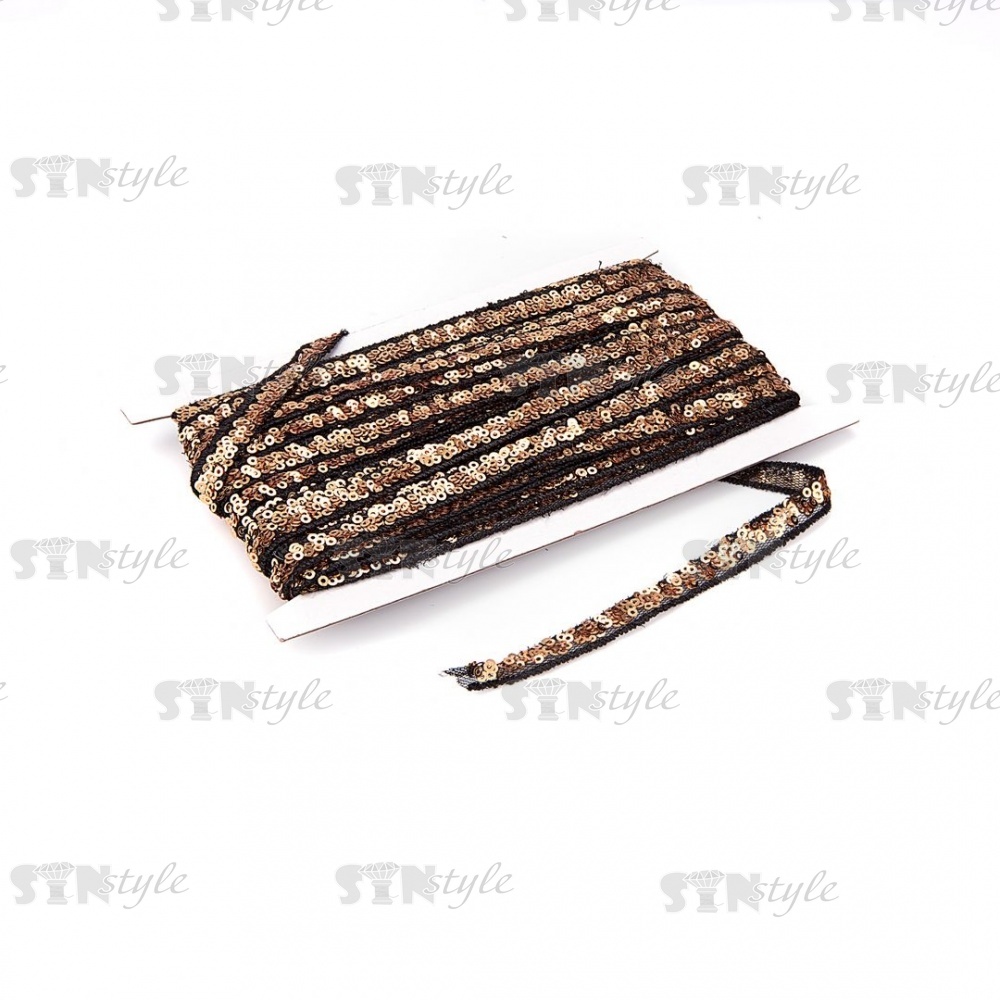 Тесьма-сетка, расшитая пайетками, цвет золото, ширина 10 мм, намотка 20 ярдов
