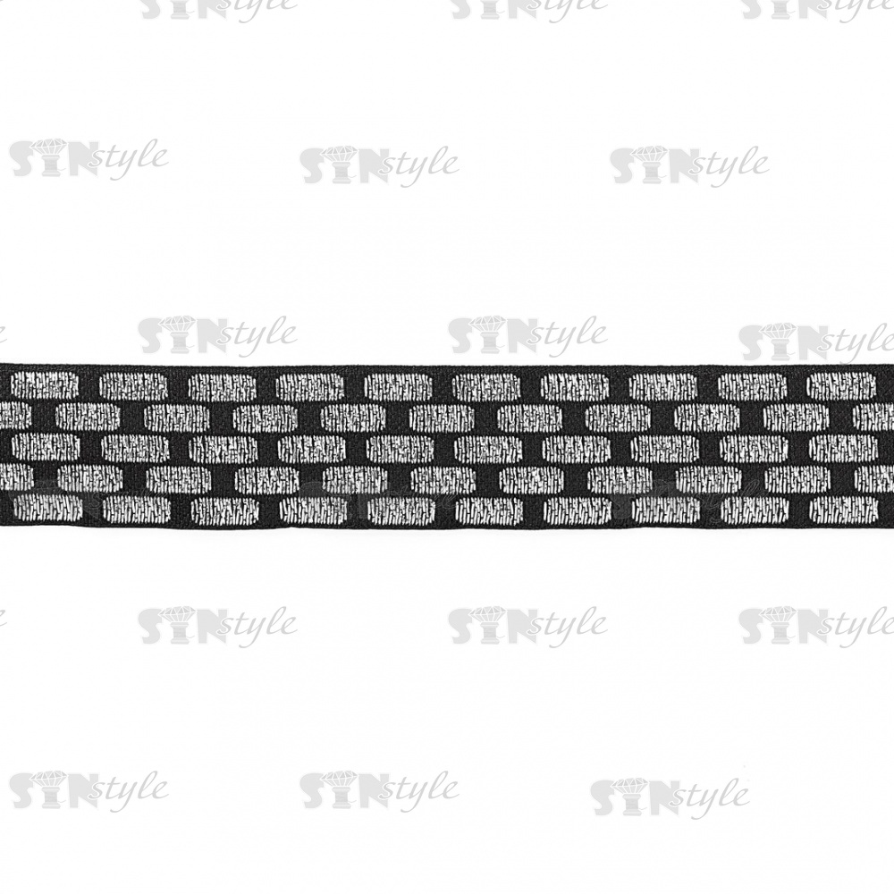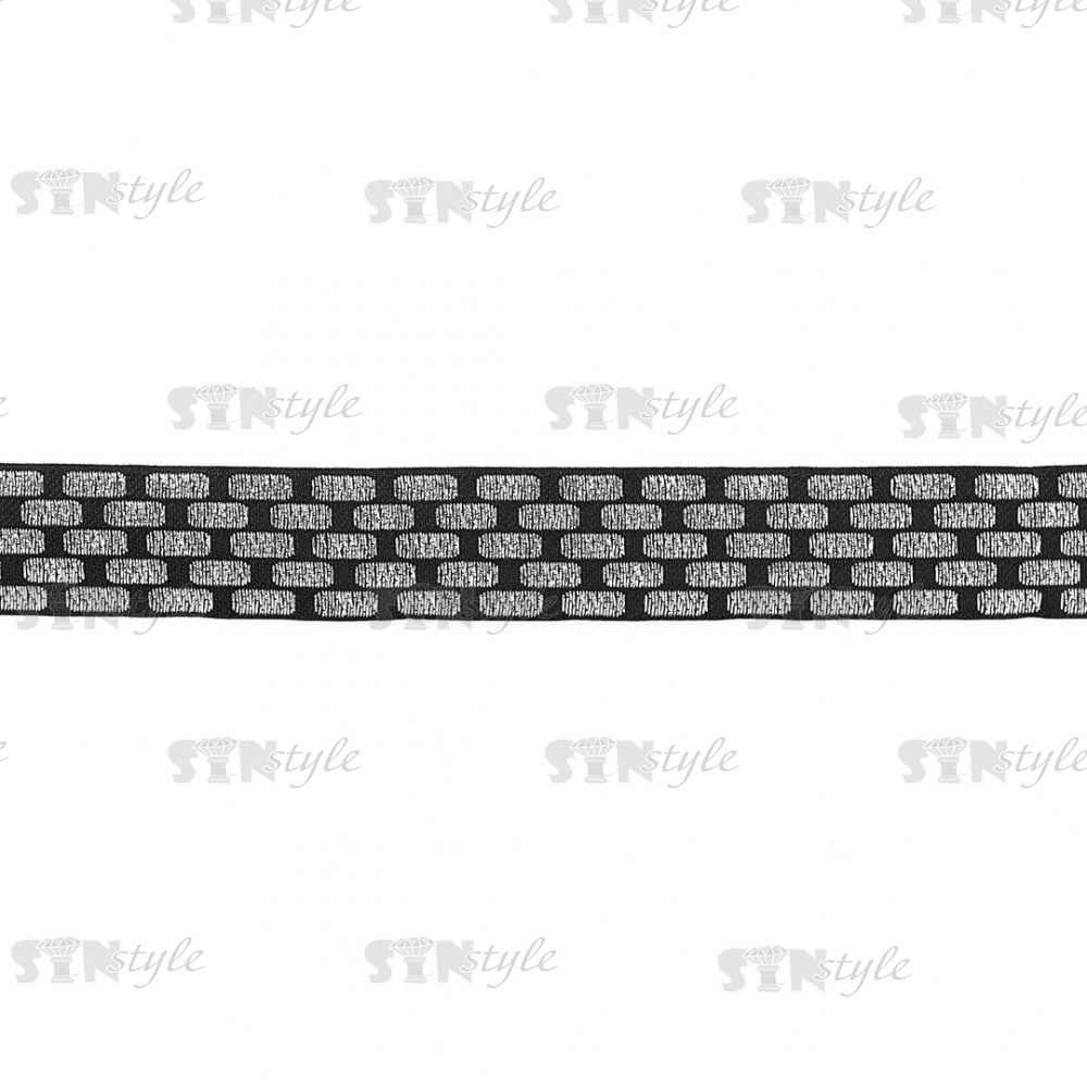 Жаккардовая лента, ширина 25 мм, намотка 10 м, цвет черный+серебро