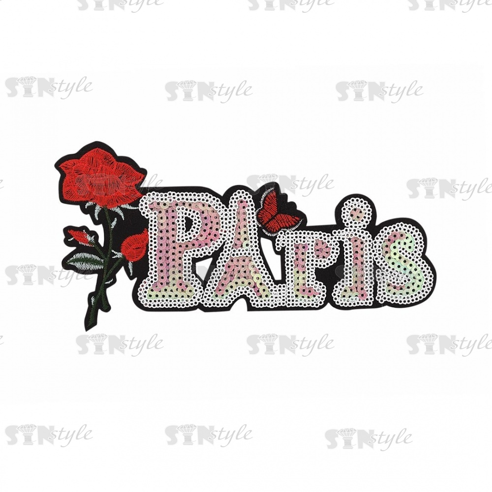 Термоаппликация "Paris" с пайетками, размер 195х97 мм