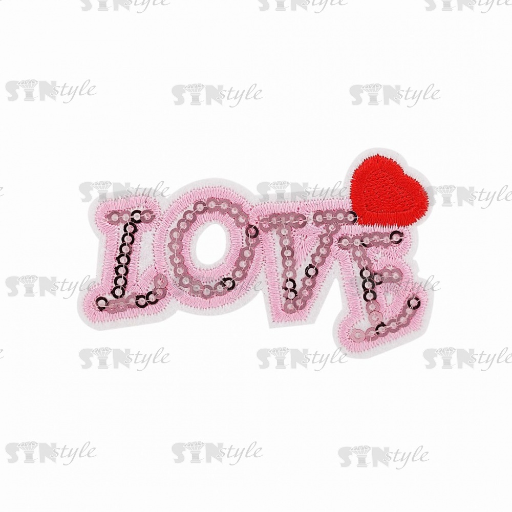 Термоаппликация "Love" с пайетками, размер 72х40 мм