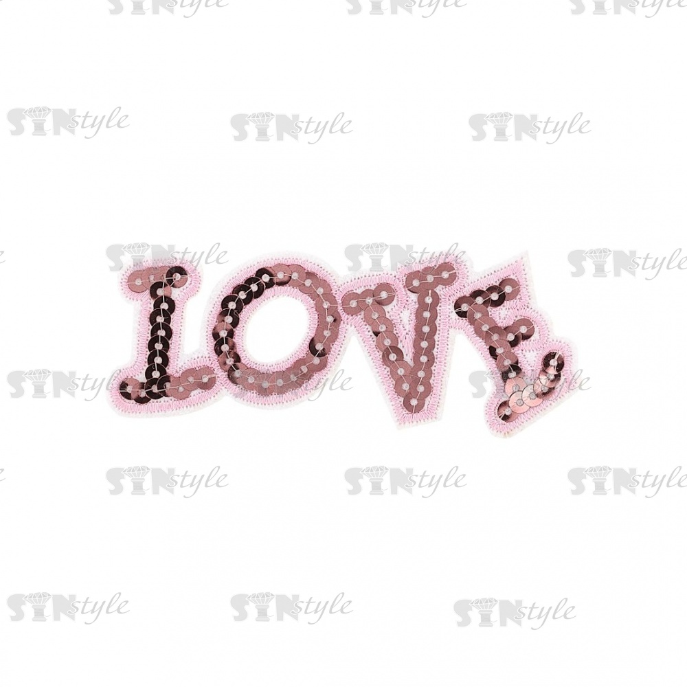Термоаппликация "Love" с пайетками, размер 103х40 мм