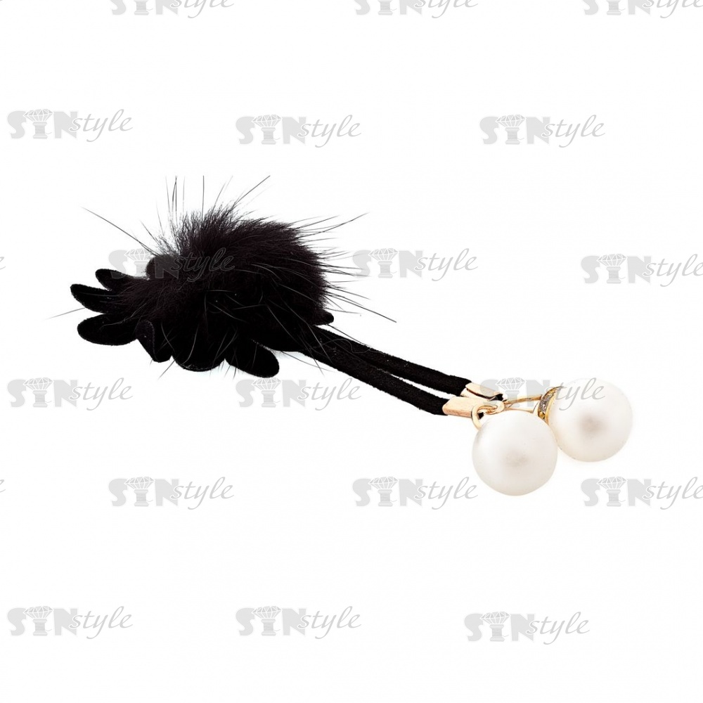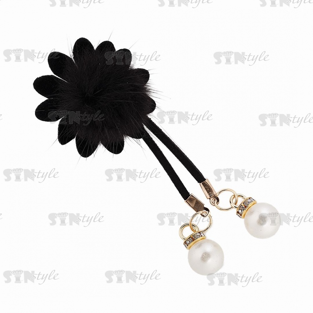 Аппликация 3D "Цветочек" с мехом, цвет черный, размер 40х85 мм