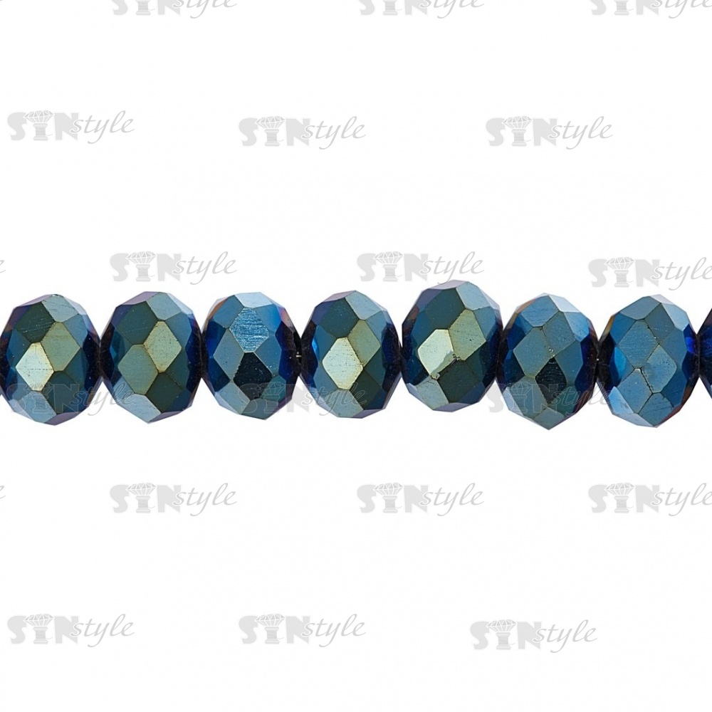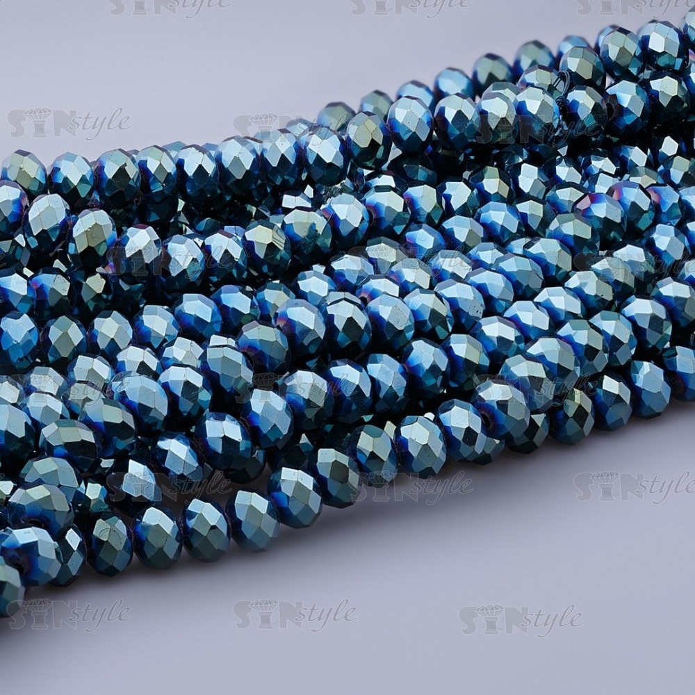 Бусины граненые Рондель (стекло), цвет зеленый радужный-голография (86), 4 мм, 140-150 шт/нить