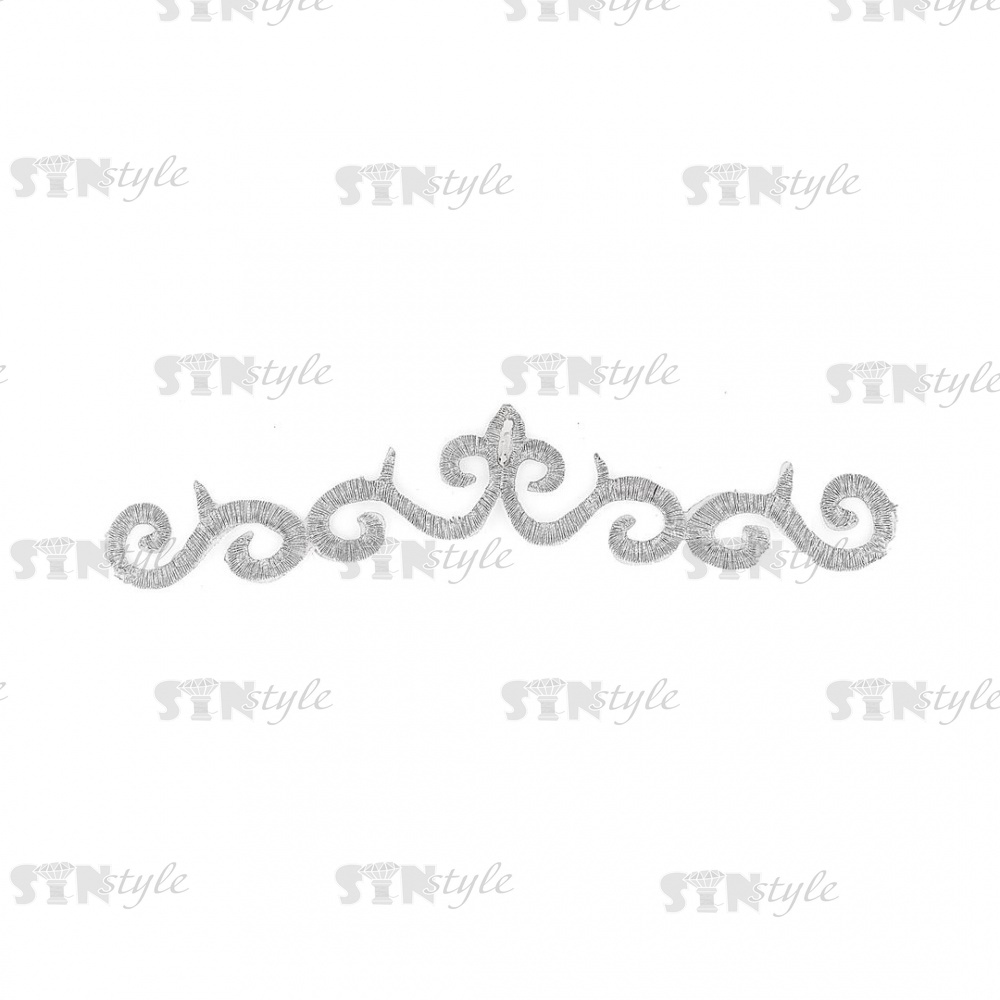 Термоаппликация орнамент, цвет серебряный, размер 195х38 мм