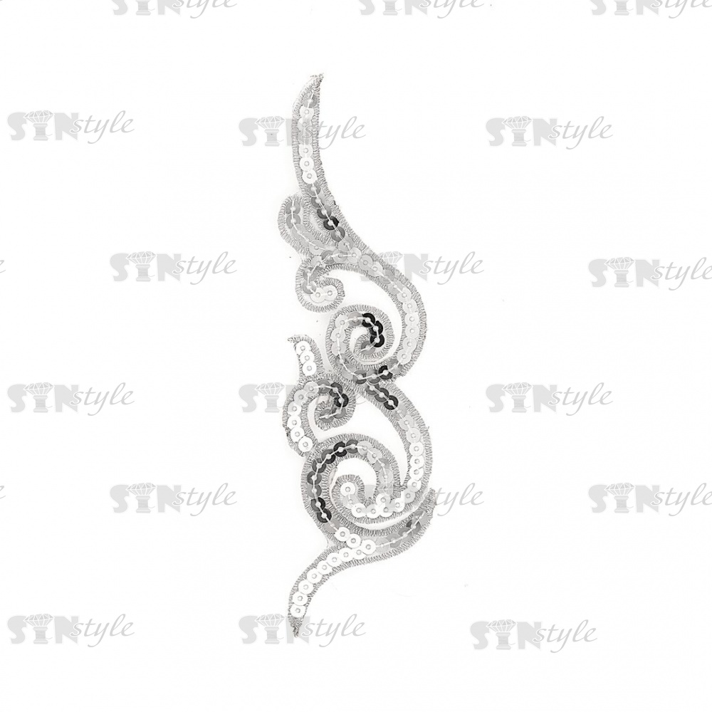 Аппликация орнамент с пайетками, цвет серебряный, размер 50х175 мм